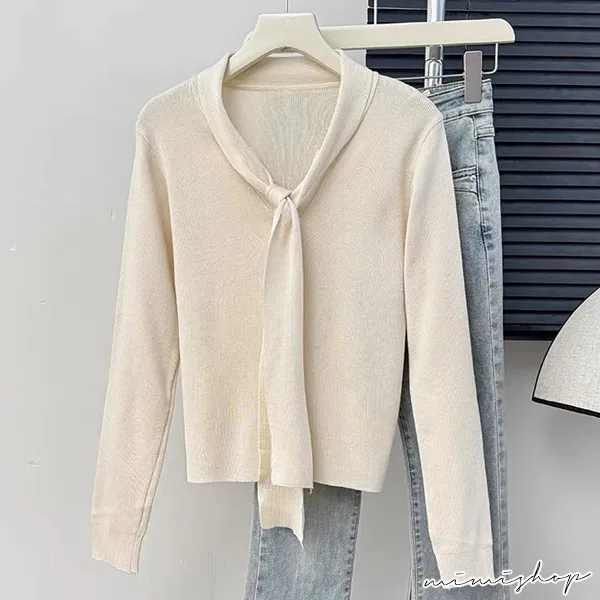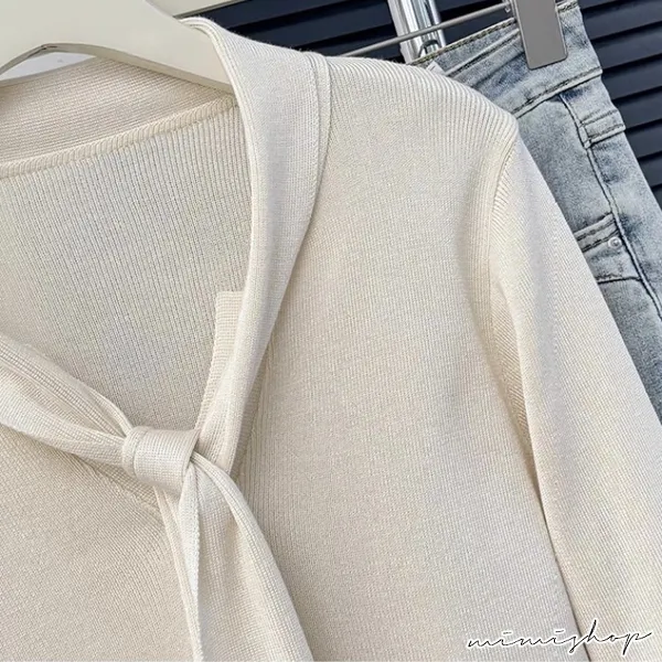 【21A304】法式名媛風 V領綁帶針織上衣 產後繼續美