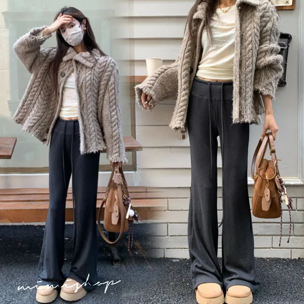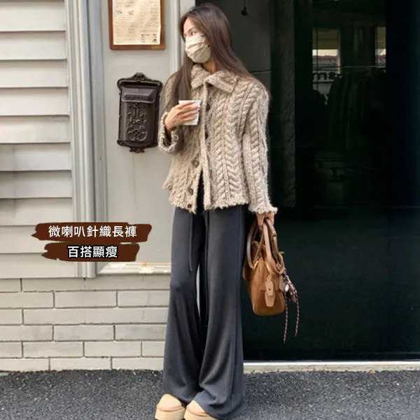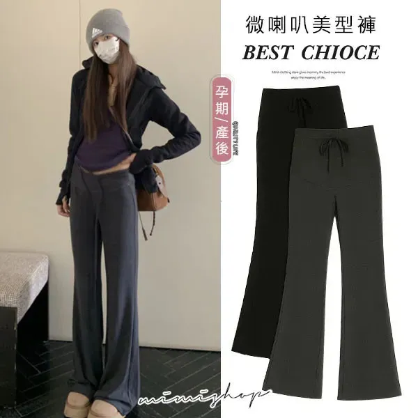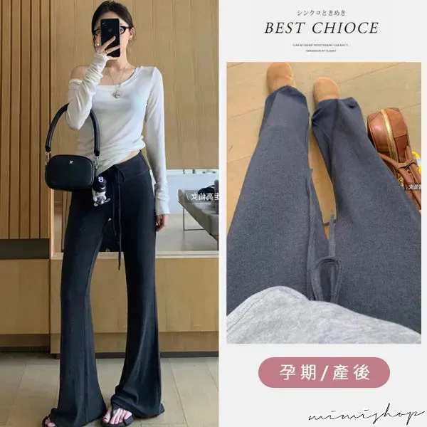 【21A393】小個子媽咪推薦 顯瘦線條 微喇叭針織長褲 孕婦褲