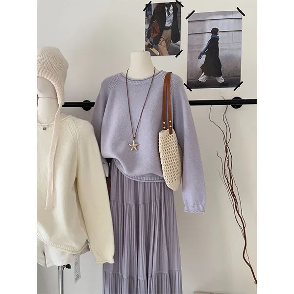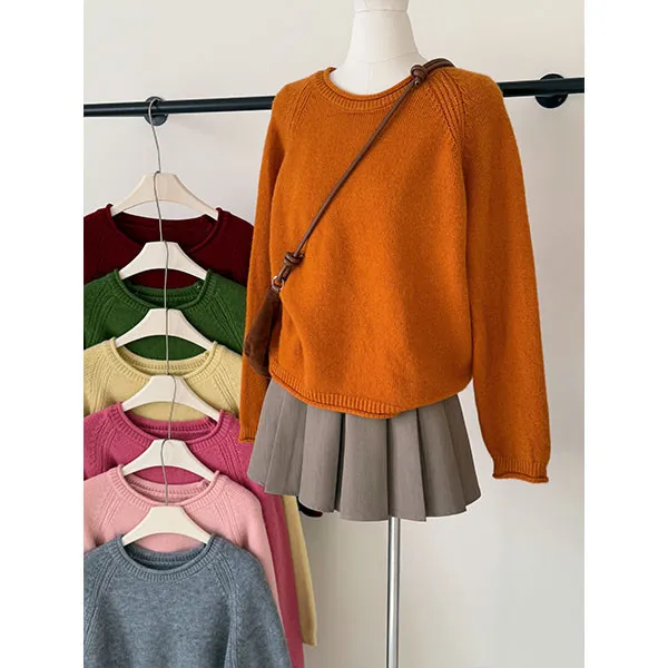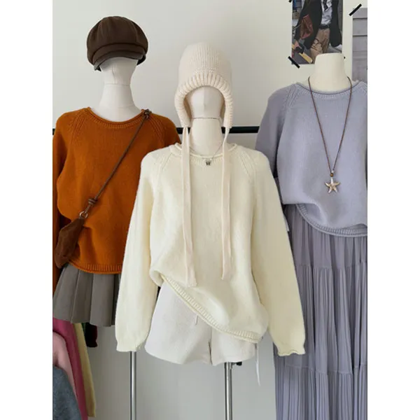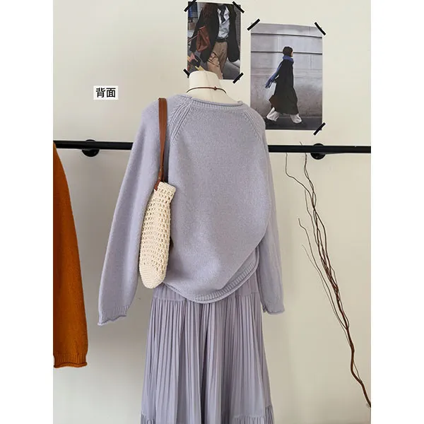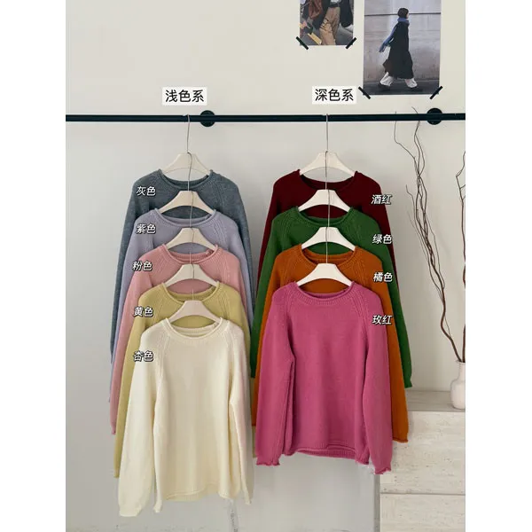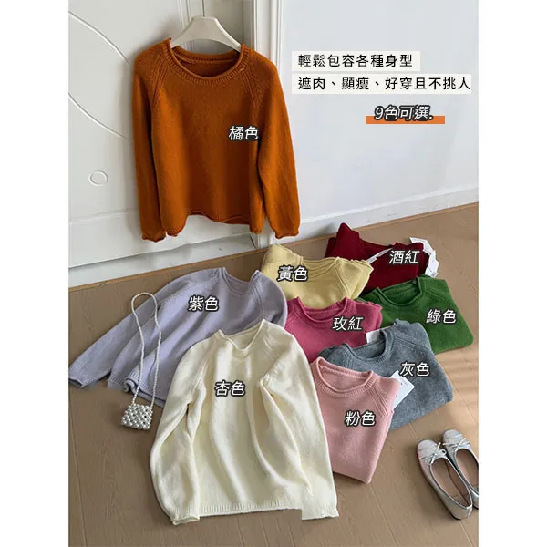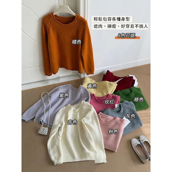 【Lu250012】Lumie女裝 韓系柔感 圓領卷邊針織衣 寬鬆毛衣