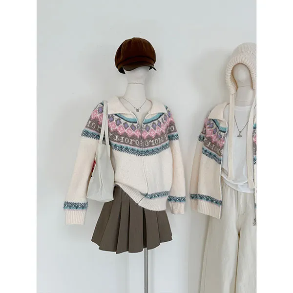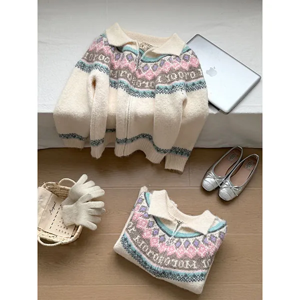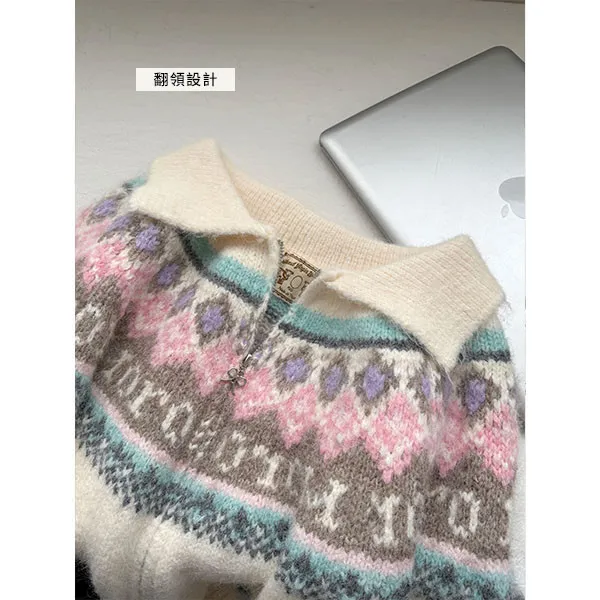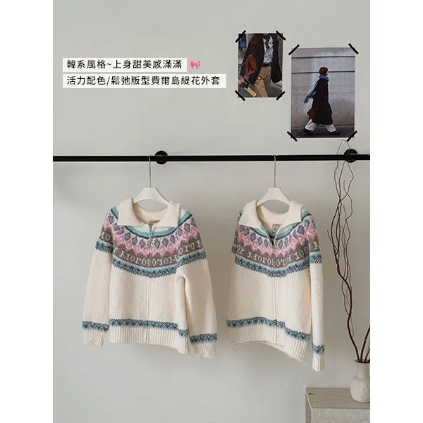 【Lu250017】Lumie女裝 費爾島緹花針織衫 翻領毛衣外套 超值推薦