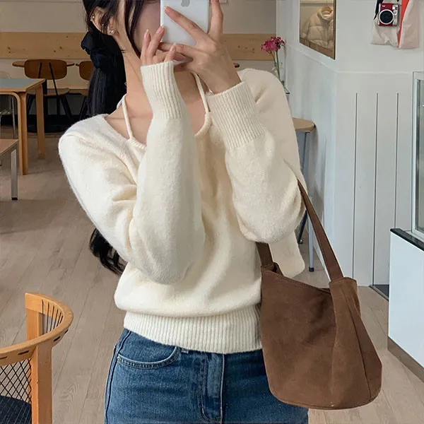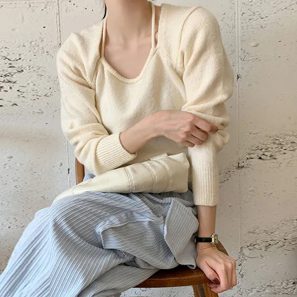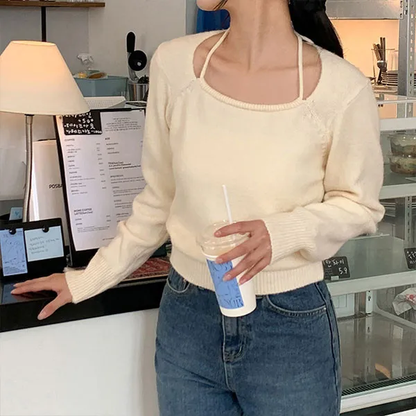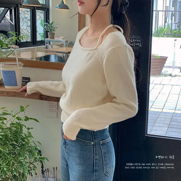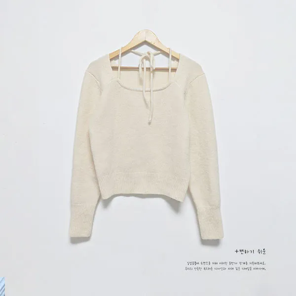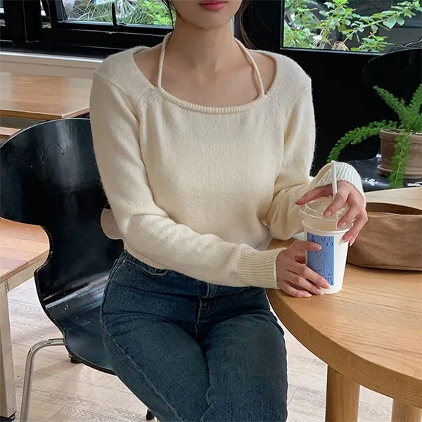【Lu250020】Lumie女裝 清新百搭 掛脖繫帶針織衣 軟糯毛衣