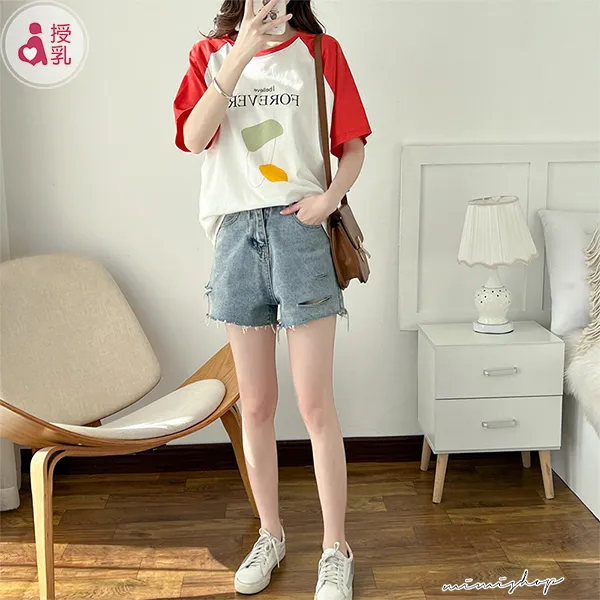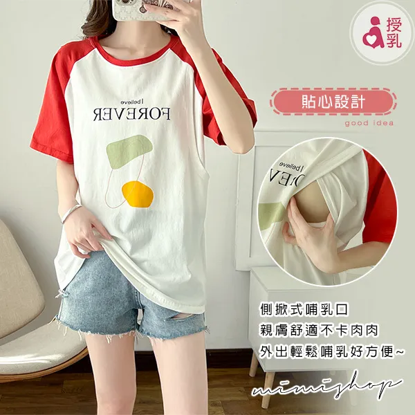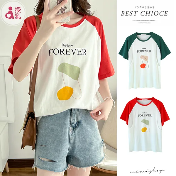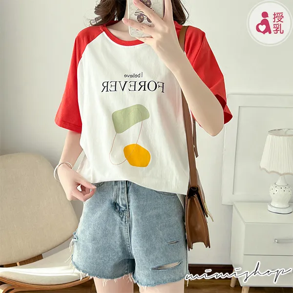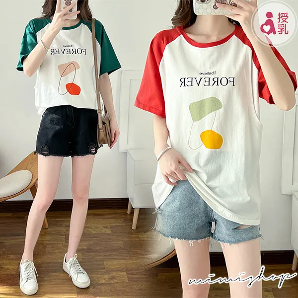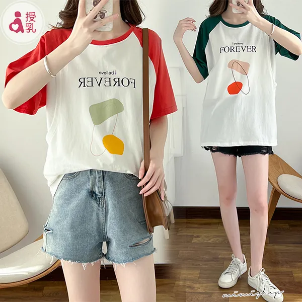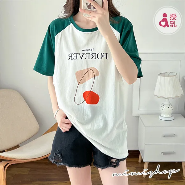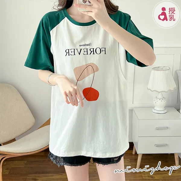 【P12350】FOREVER美式休閒 高棉質幾何哺乳衣 孕哺百搭