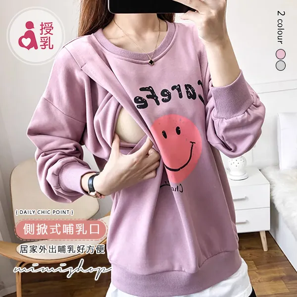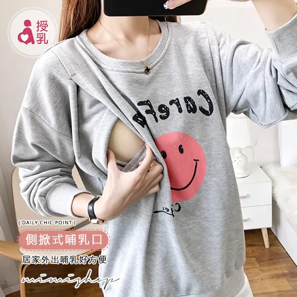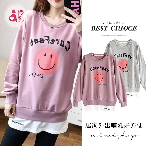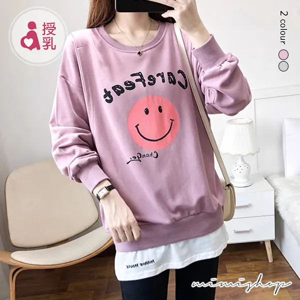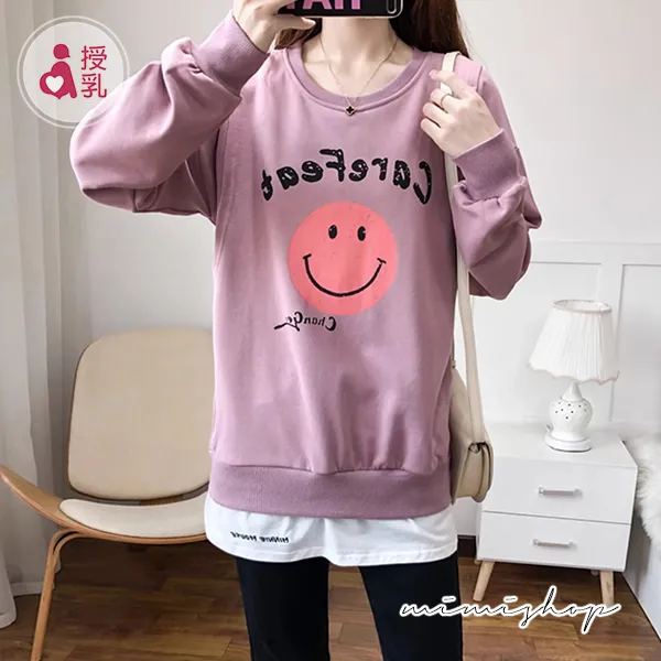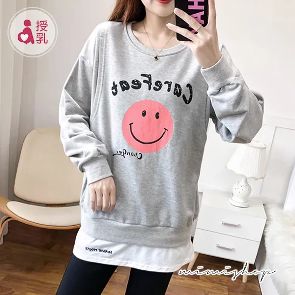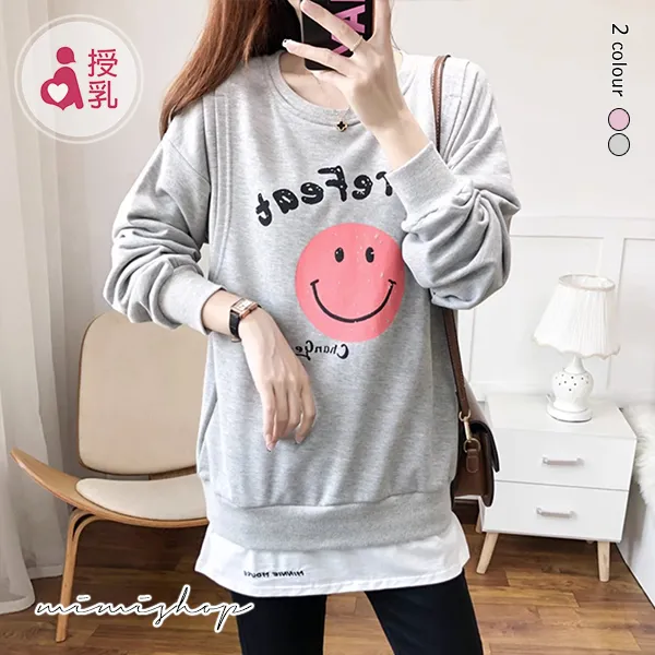 【P12423】簡單有型 長袖假兩件微笑哺乳衣 孕哺兩用