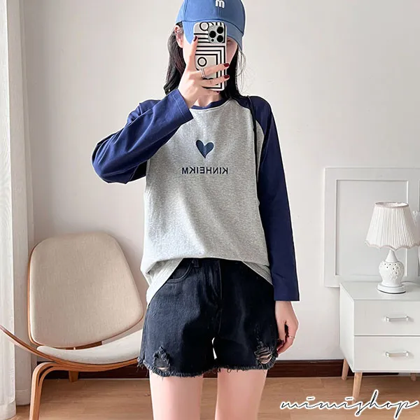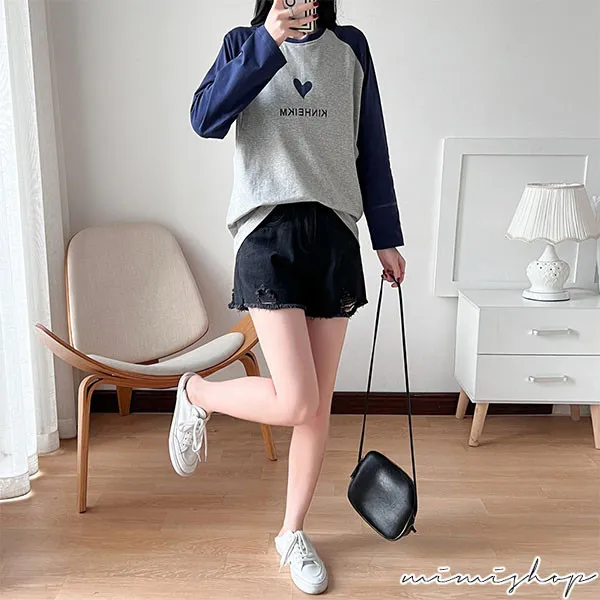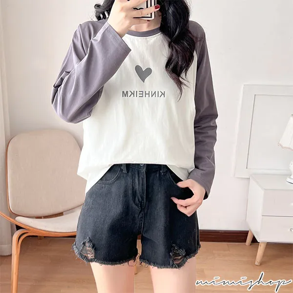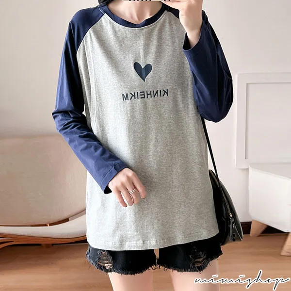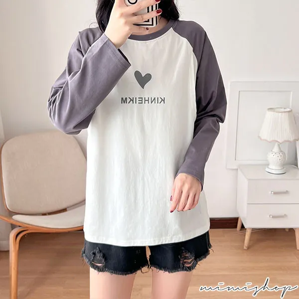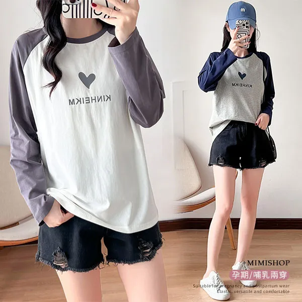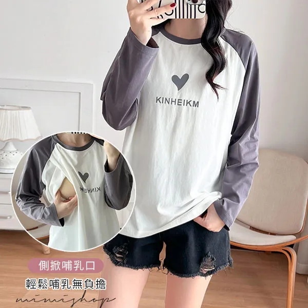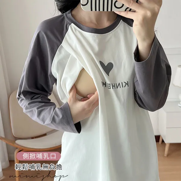 【P12437】愛的祝福 長袖撞色小愛心哺乳衣 坐月子 孕哺兩用