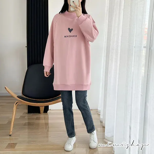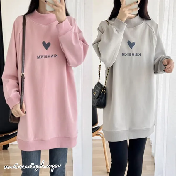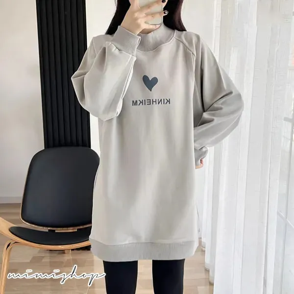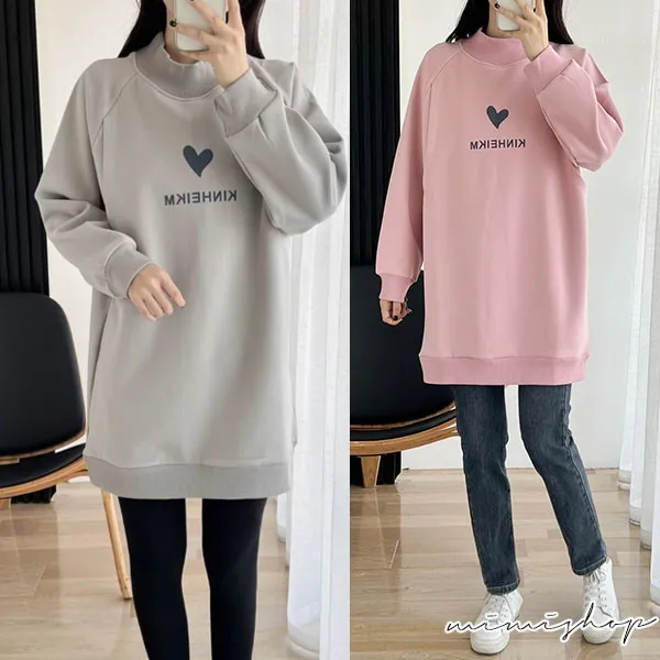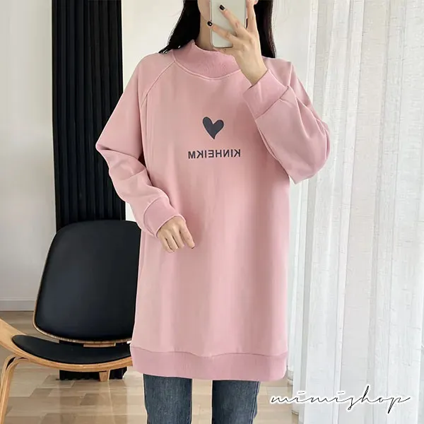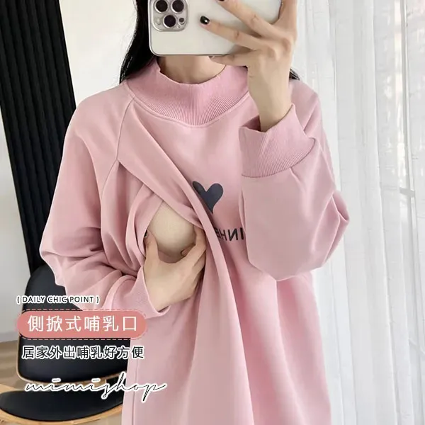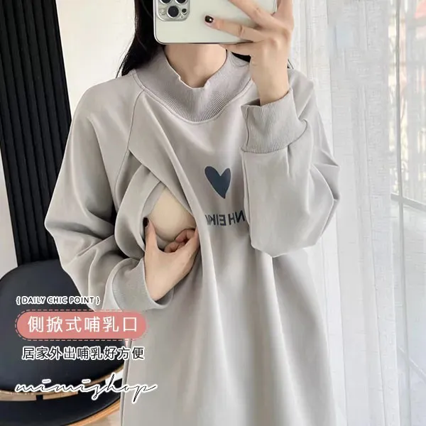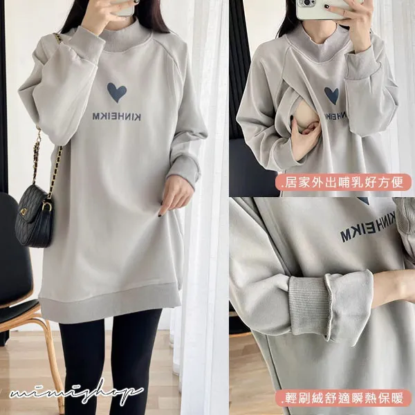 【P12442】呵護保暖 高領刷絨愛心哺乳衣 長版舒適 坐月子推薦