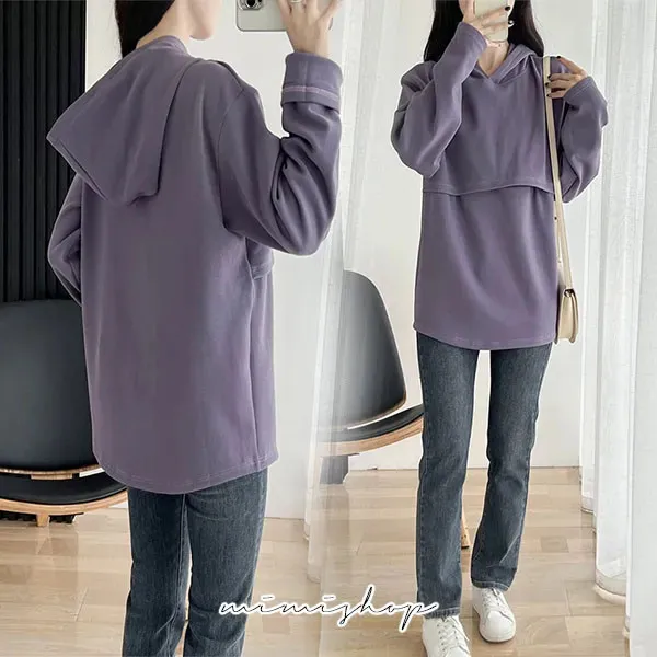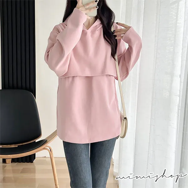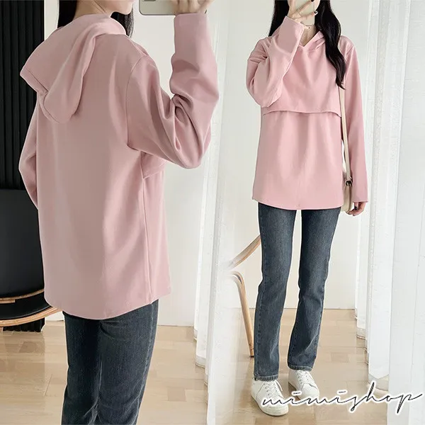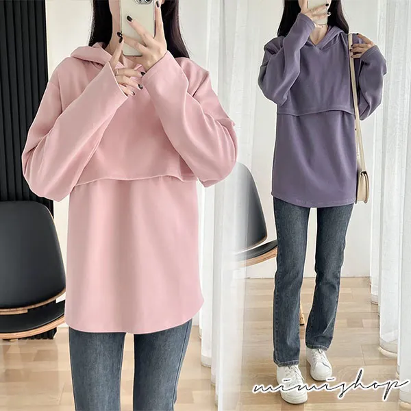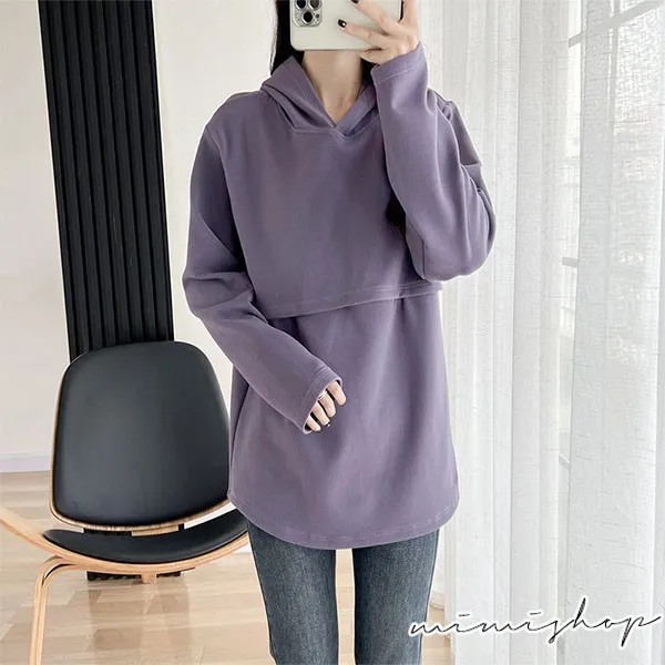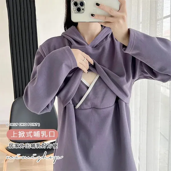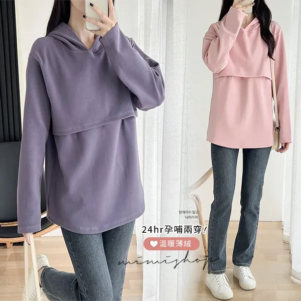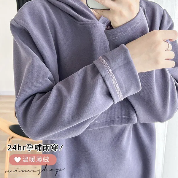 【P12445】輕暖舒適 溫暖薄絨連帽哺乳衣 孕哺兩用 坐月子
