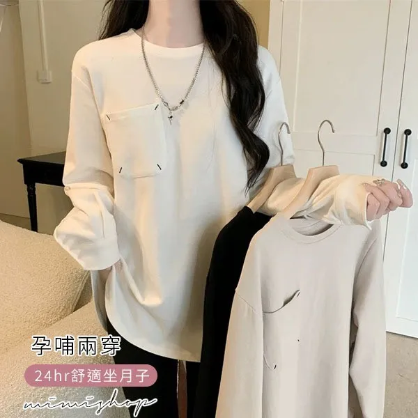 【P12458】月子必備 優質棉彈力小口袋哺乳衣 內搭衣 孕哺兩用