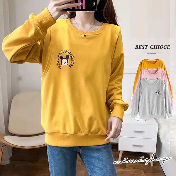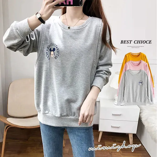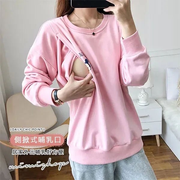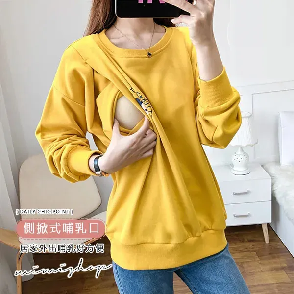【P12460】百搭實穿 優質毛圈小奇長袖哺乳衣 休閒舒適