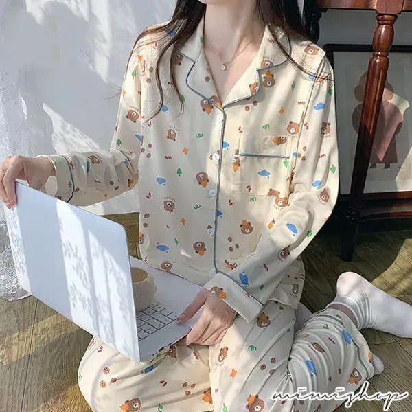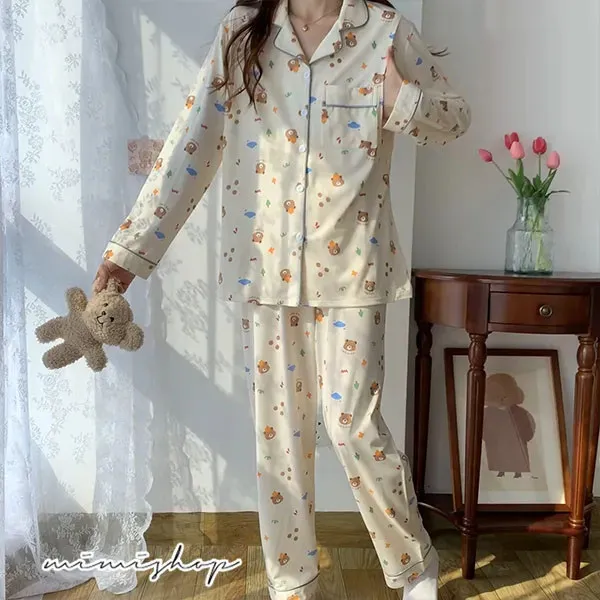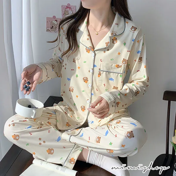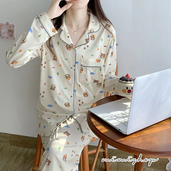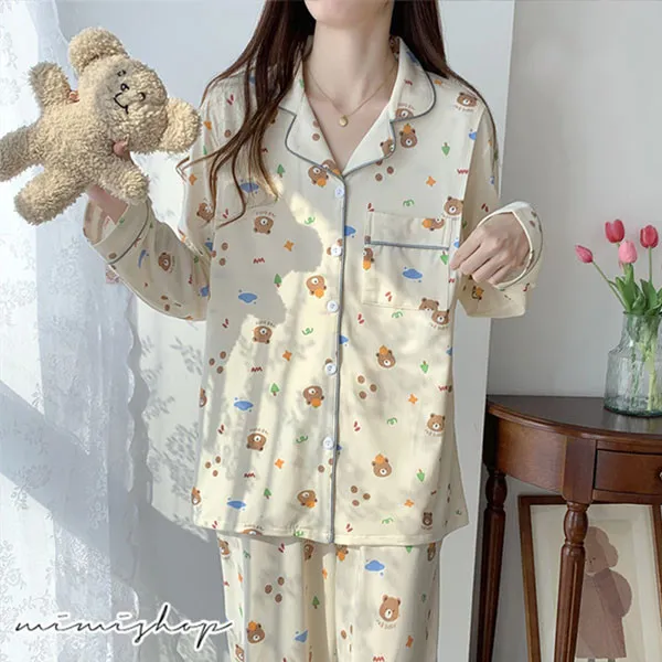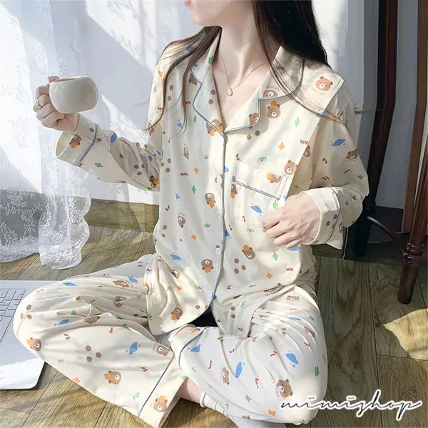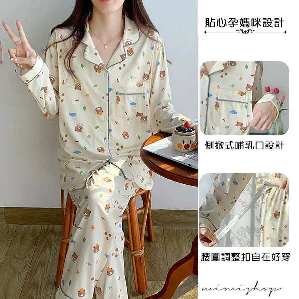 【P21345】輕鬆午後 療癒系棉質哺乳衣+長褲 哺乳睡衣 居家坐月子