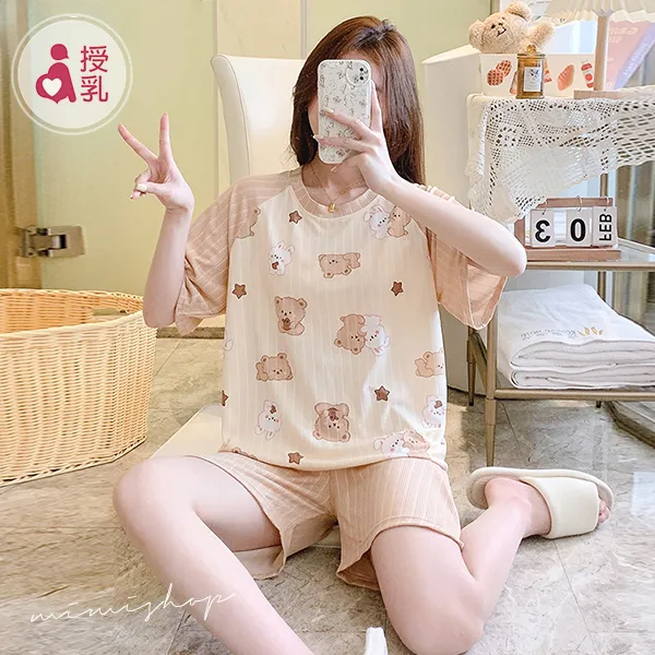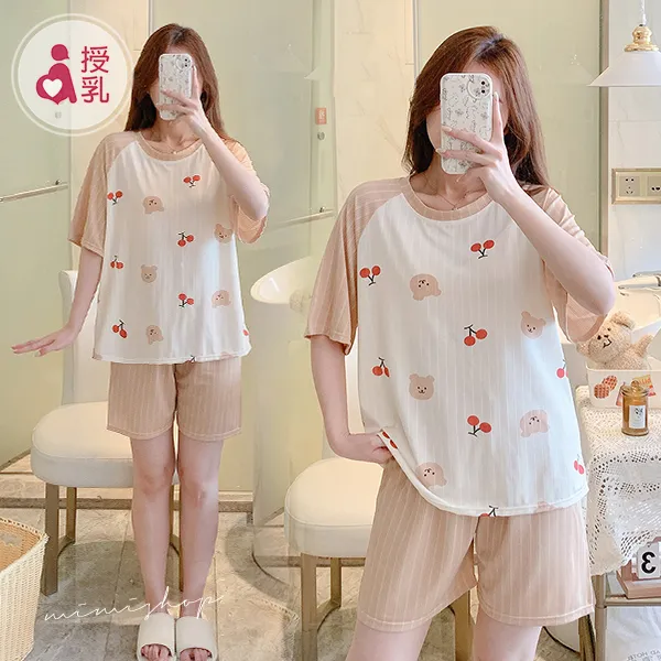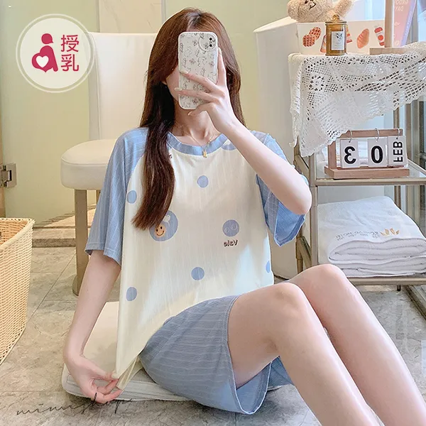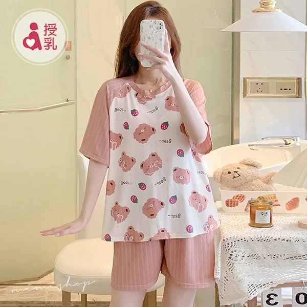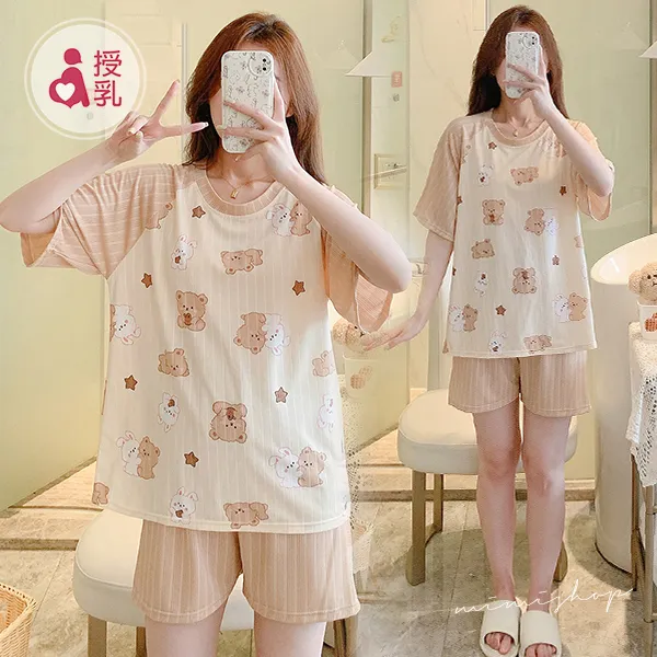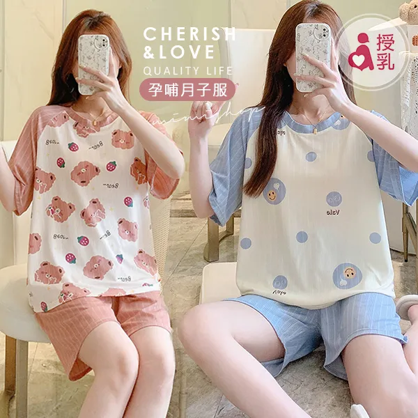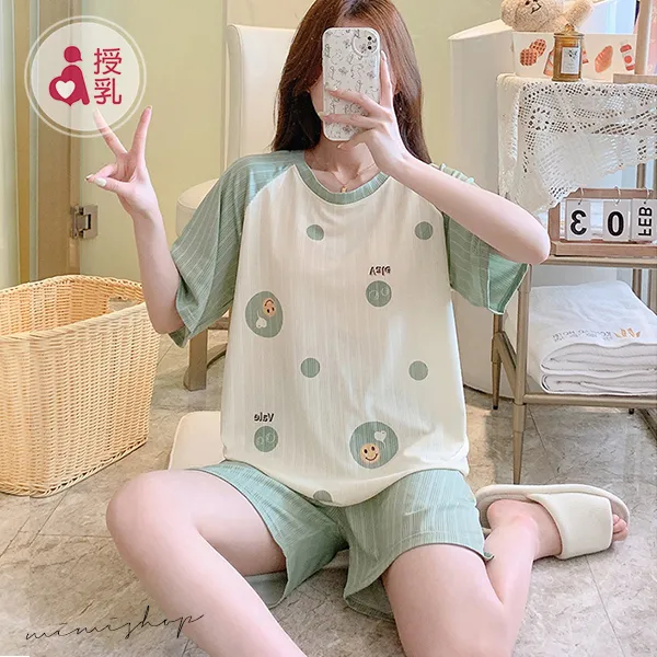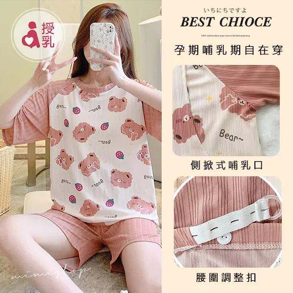 【P21373】遇見美好 針織紋透氣哺乳衣+短褲 哺乳睡衣 居家坐月子