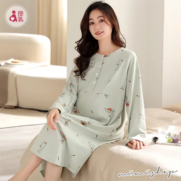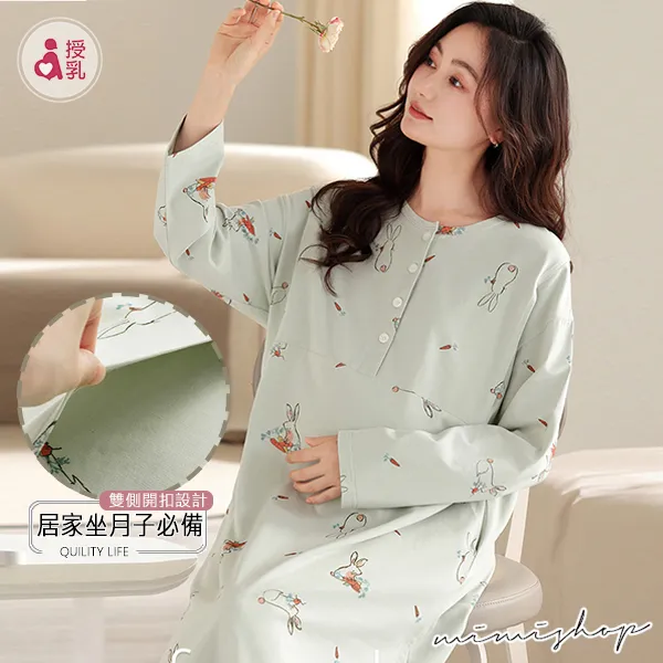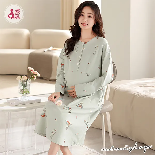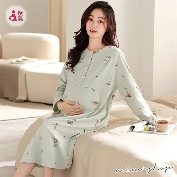 【P21384】最舒適的陪伴 蘿蔔兔兔柔棉哺乳裙 哺乳衣 孕哺兩用