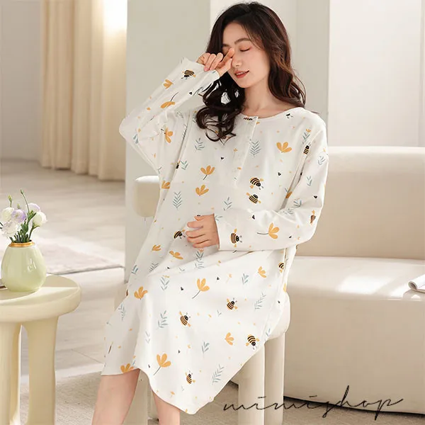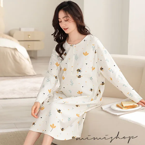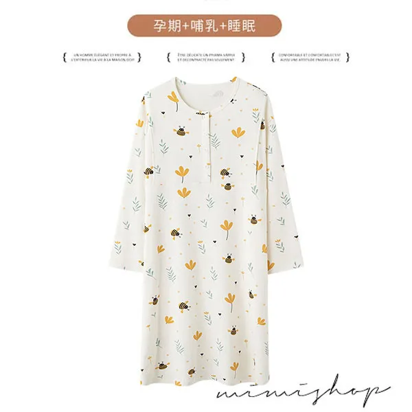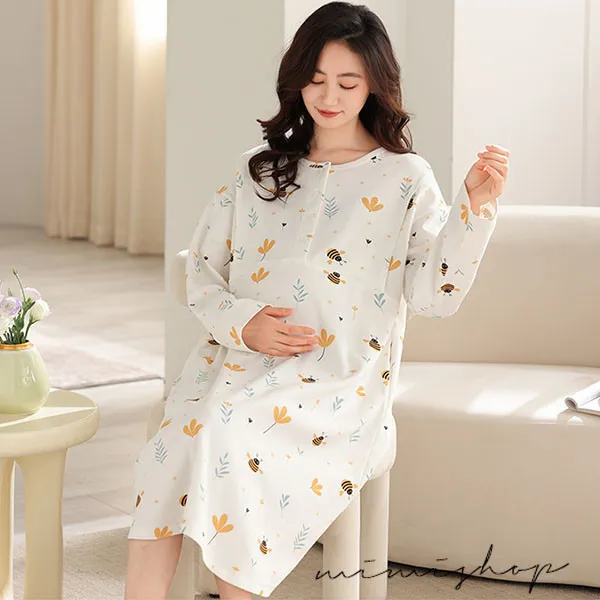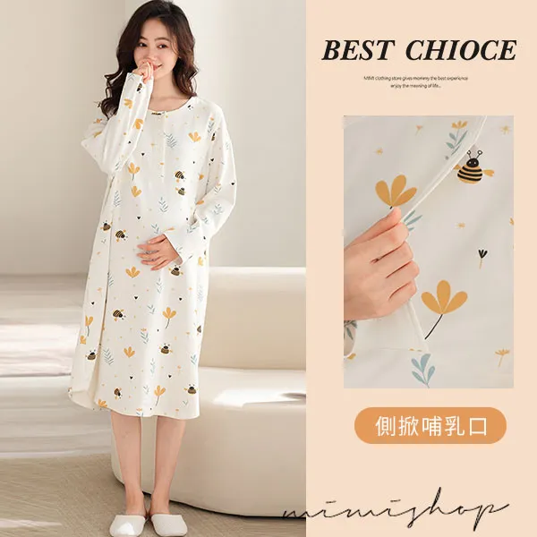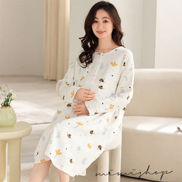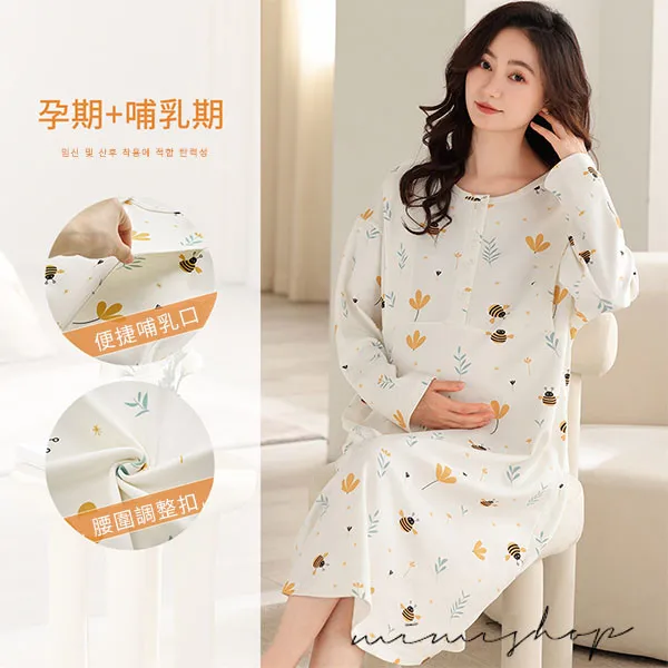 【P21388】最舒適的陪伴 快樂小蜜蜂柔棉哺乳裙 哺乳衣 孕哺兩用