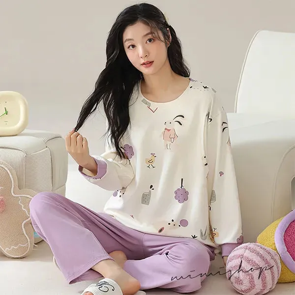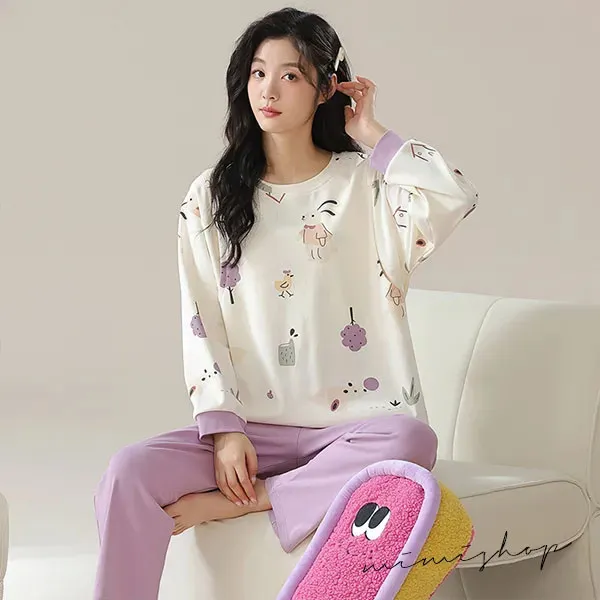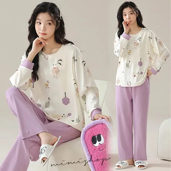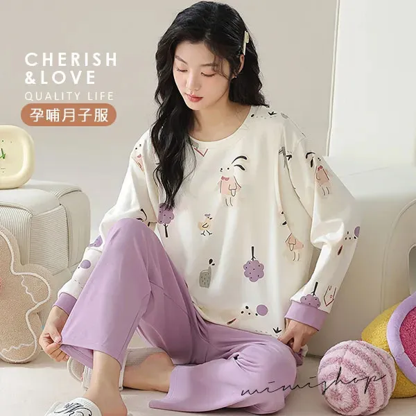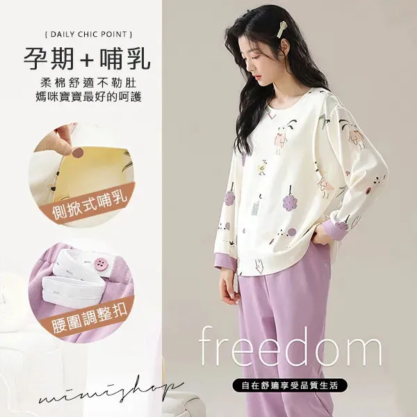 【P21393】小雞好朋友 舒適棉哺乳衣+長褲 哺乳睡衣 居家坐月子