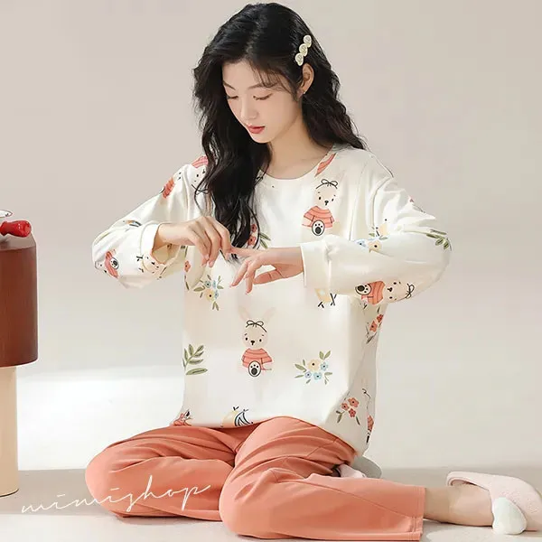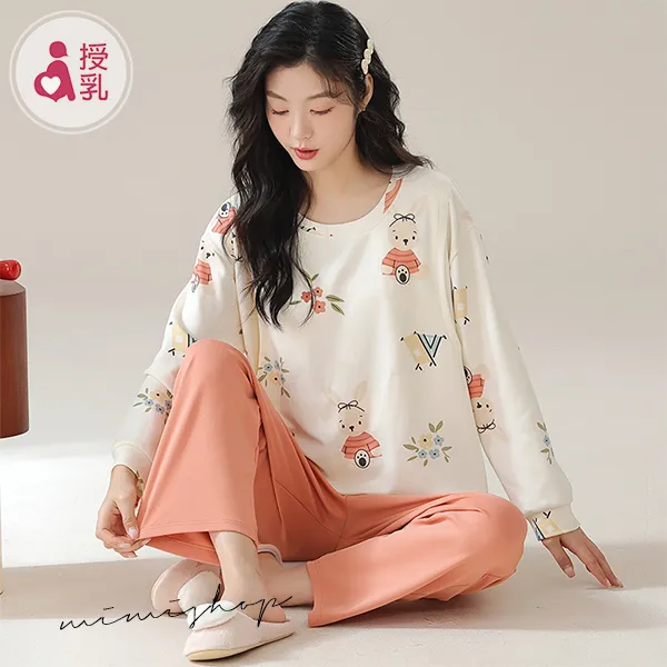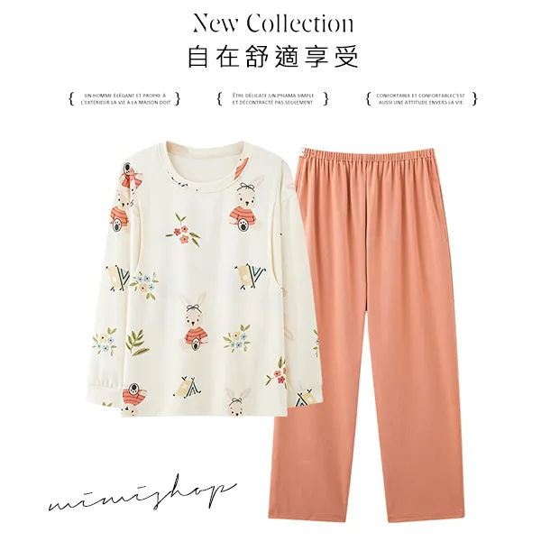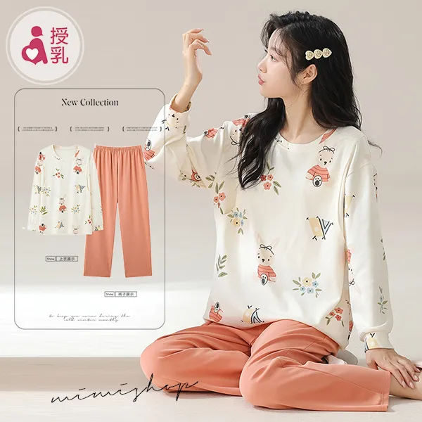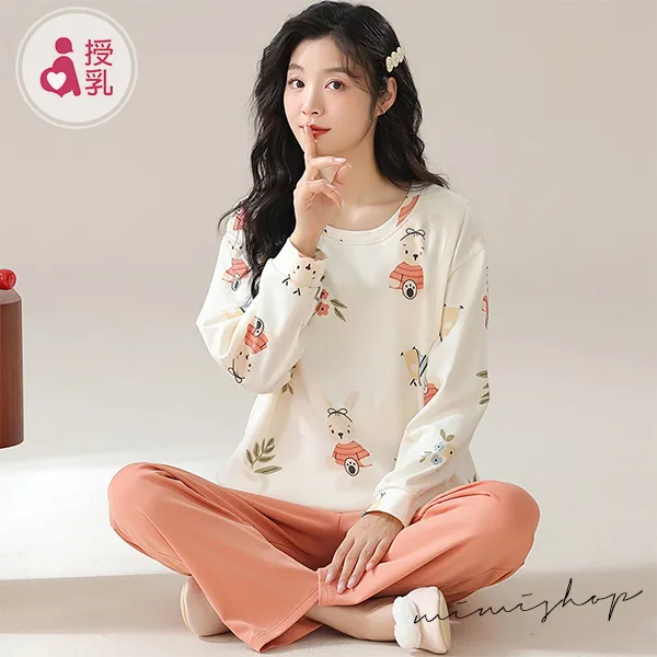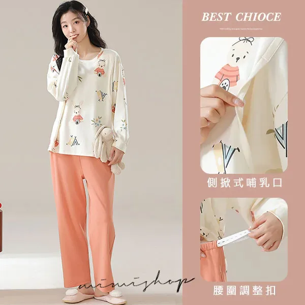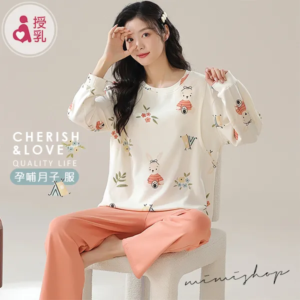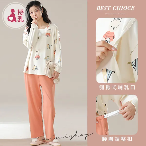 【P21395】Camp小兔 舒適棉哺乳衣+長褲 哺乳睡衣 居家坐月子
