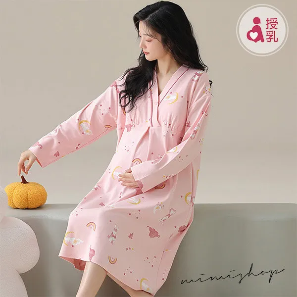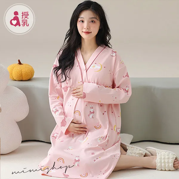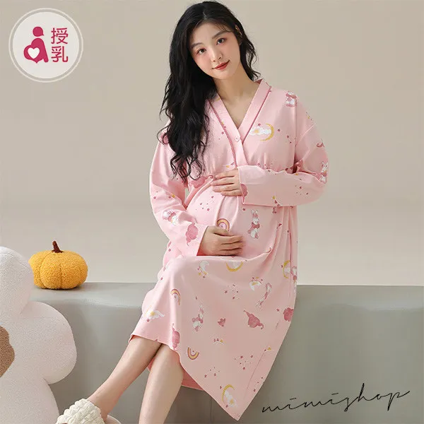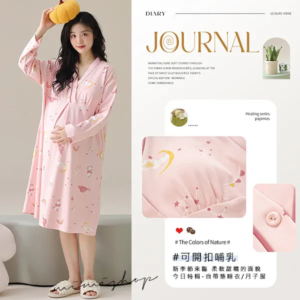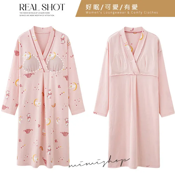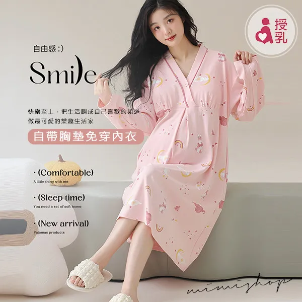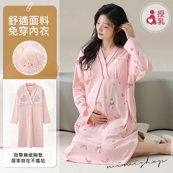【P21399】粉紅兔兔 舒適柔棉胸墊哺乳裙 哺乳衣 孕哺兩用