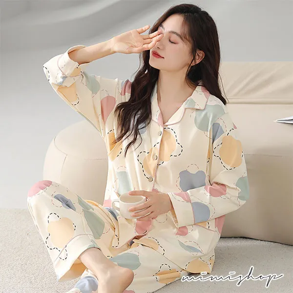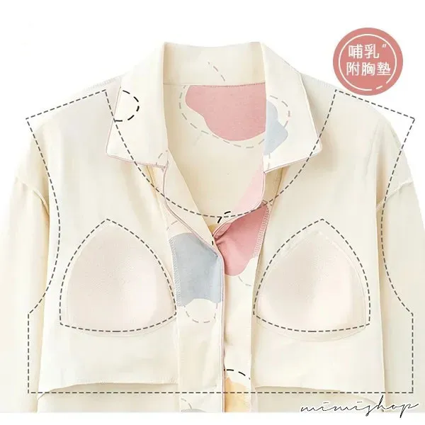 【P21416】夢幻色塊 舒適柔棉胸墊哺乳衣+長褲 哺乳睡衣 居家坐月子 孕哺兩用