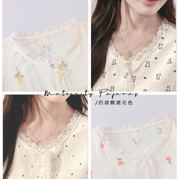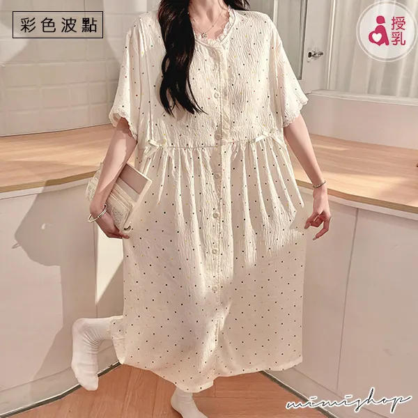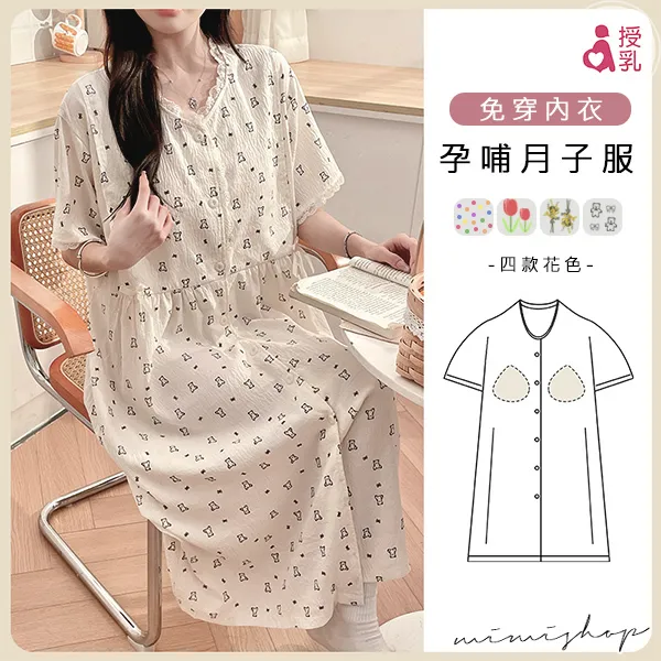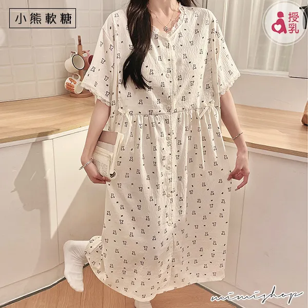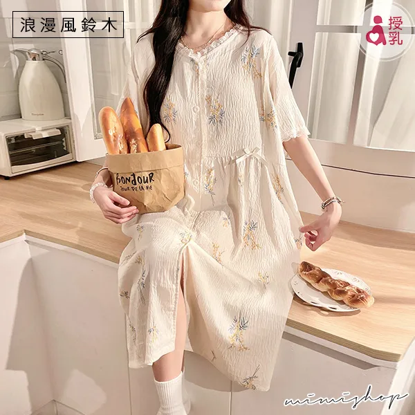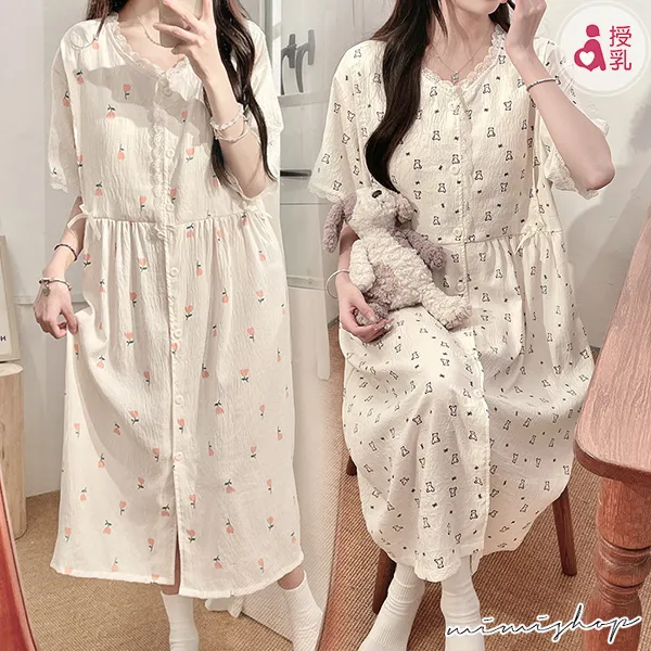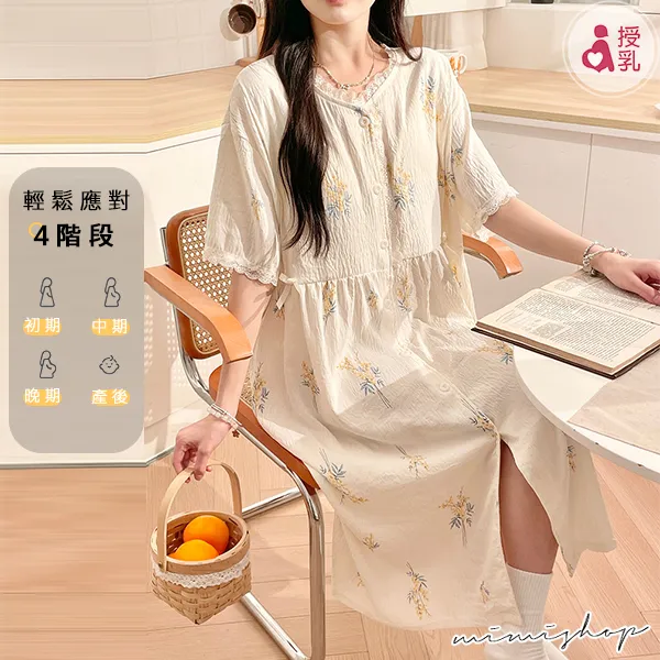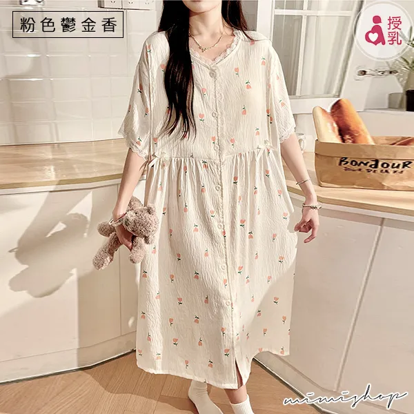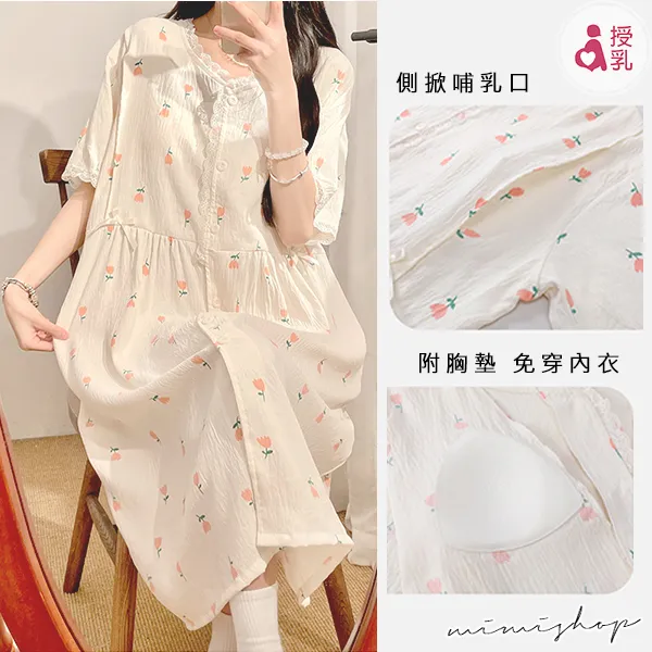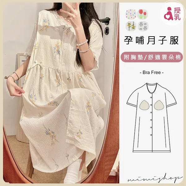 【P21449】附胸墊 雲朵棉甜美療癒系哺乳洋裝 哺乳睡衣 居家坐月子