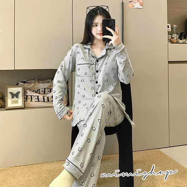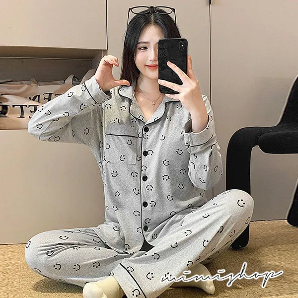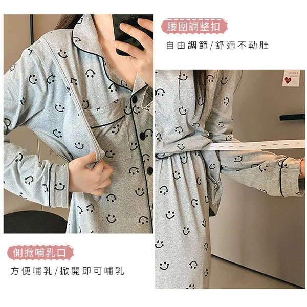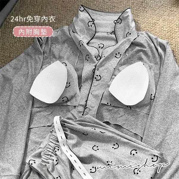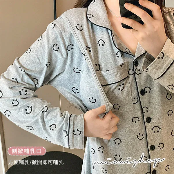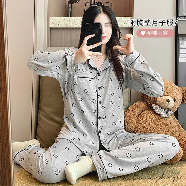 【P21463】微笑清晨 舒適柔棉胸墊哺乳衣+長褲 哺乳睡衣 居家坐月子