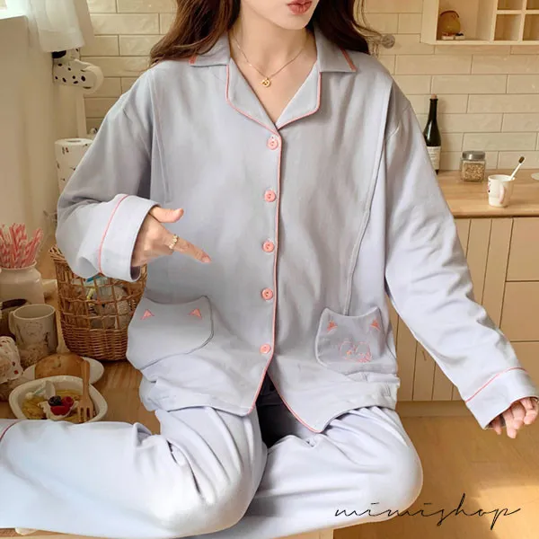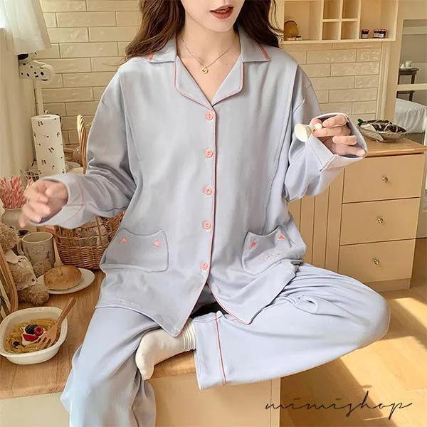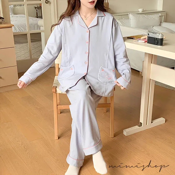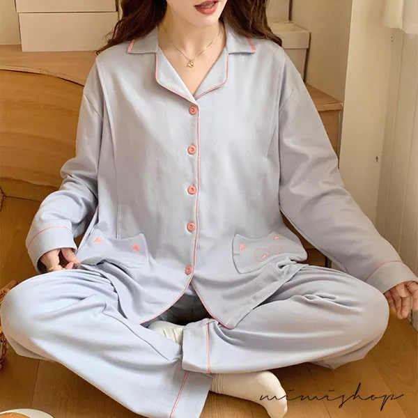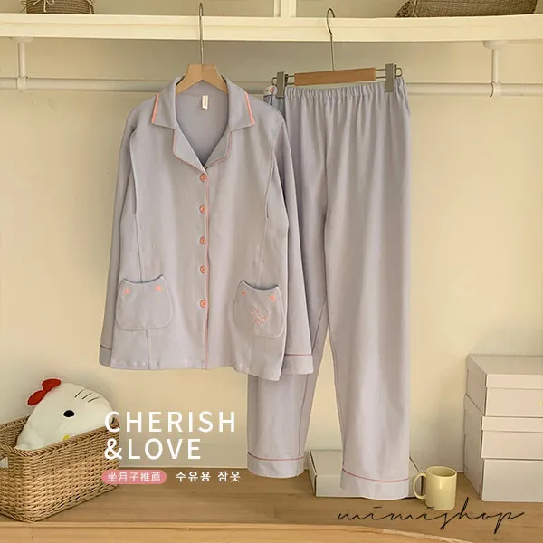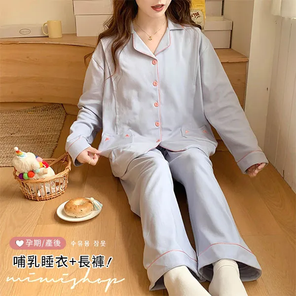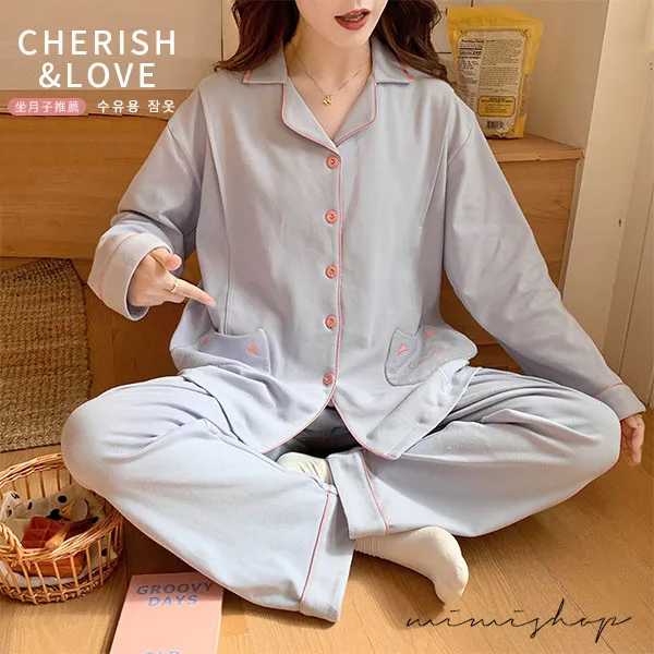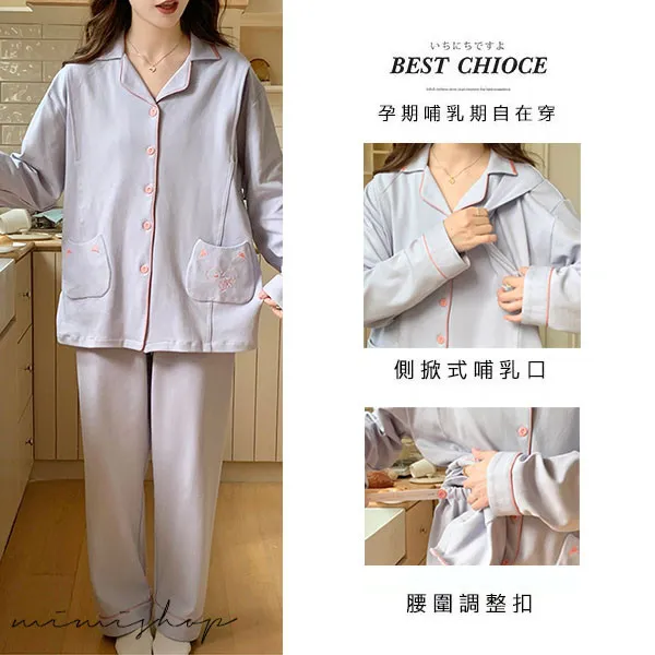 【P21465】月光粉語 舒適柔棉哺乳衣+長褲 哺乳睡衣 居家坐月子