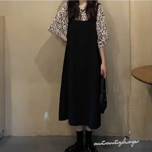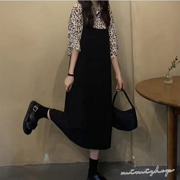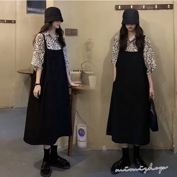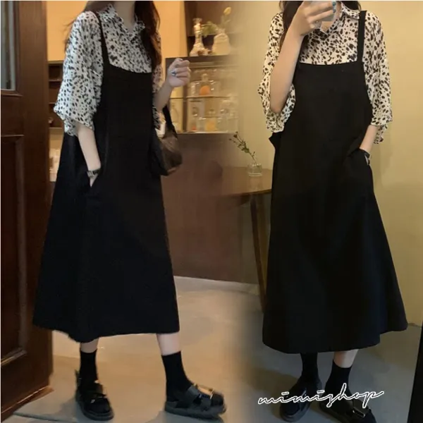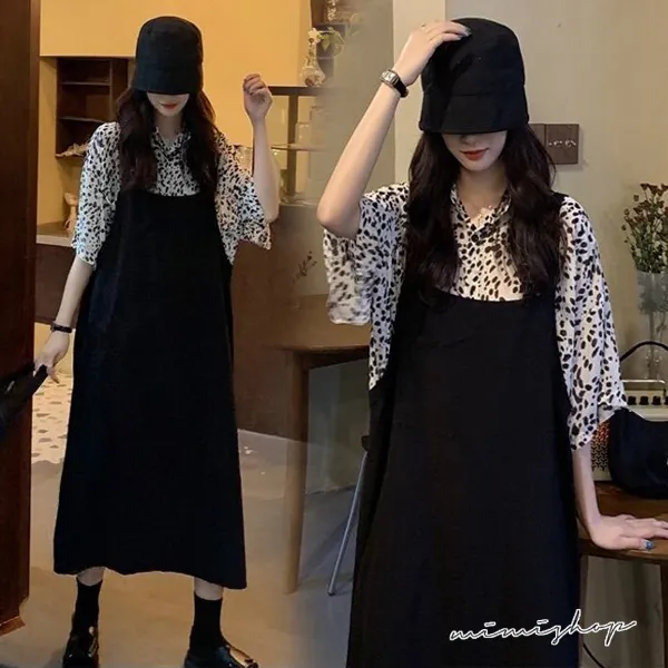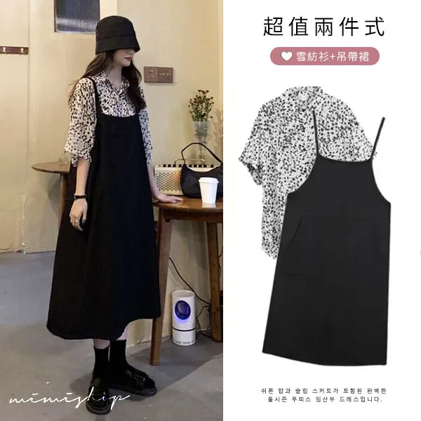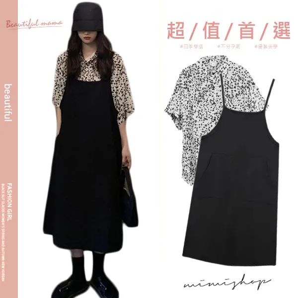 【P31463】四季好穿搭 兩件式 雪紡衫+吊帶裙 孕婦洋裝 套裝
