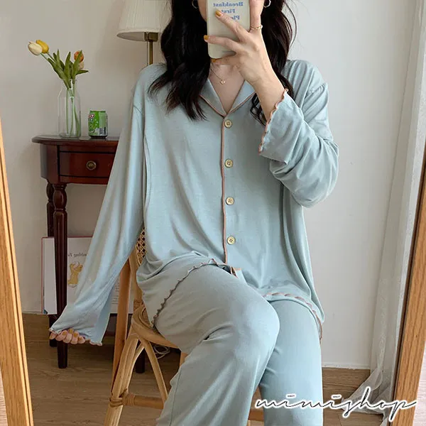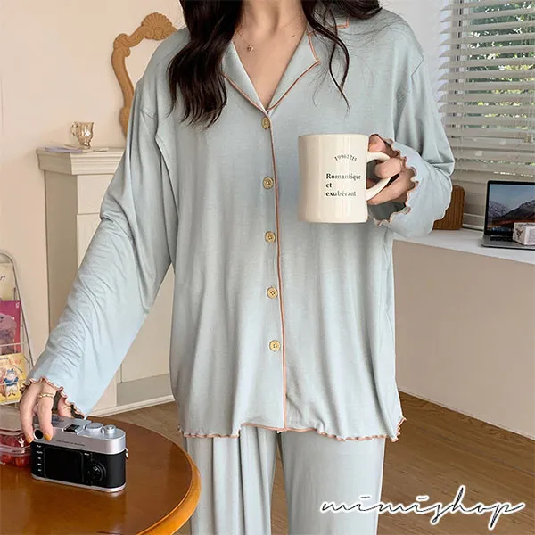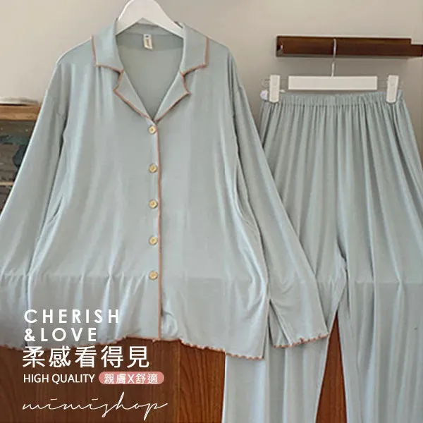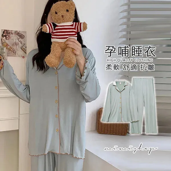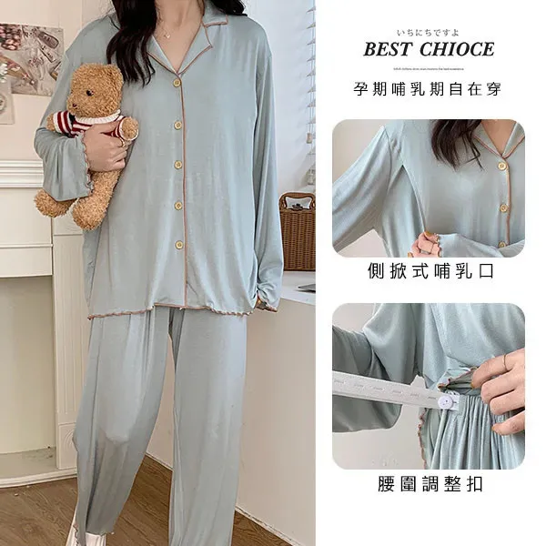 【P31546】坐月子推薦 優質莫代爾哺乳衣+長褲 哺乳睡衣 孕婦套裝