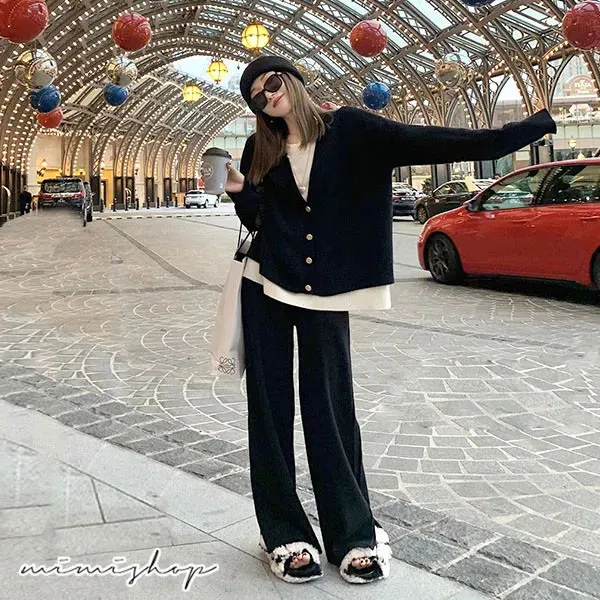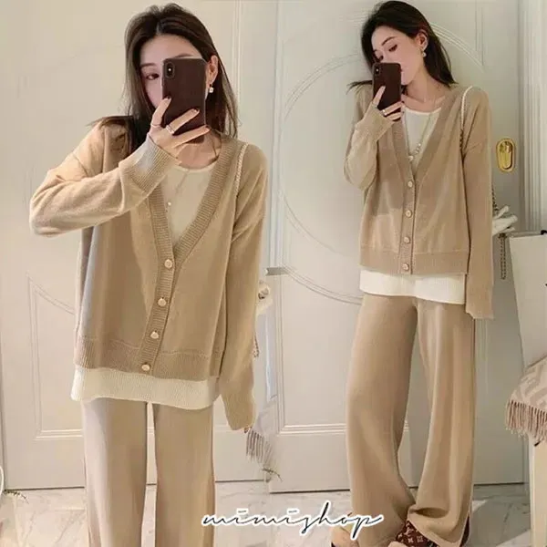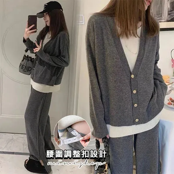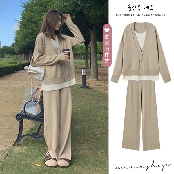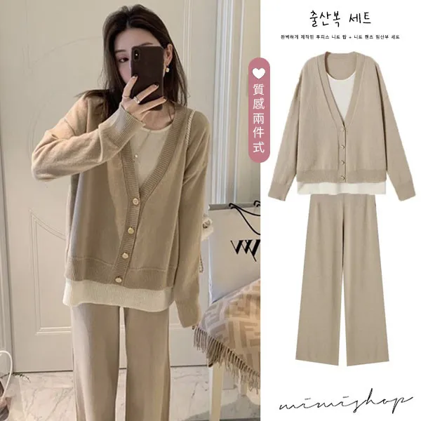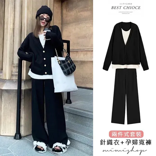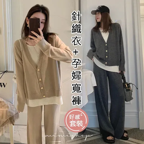 【P31610】完美搭配 質感兩件式 假兩件針織衣+針織長褲 孕婦套裝