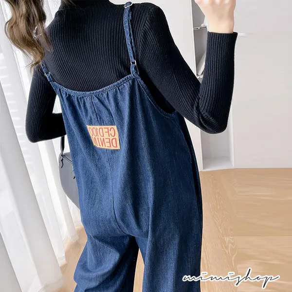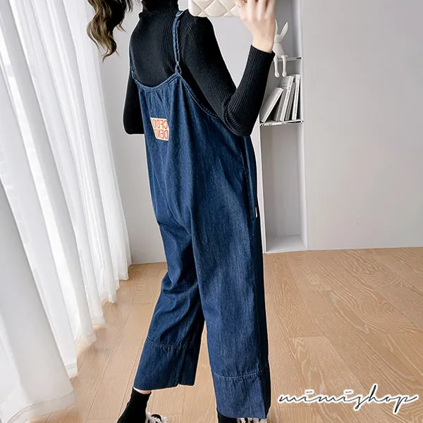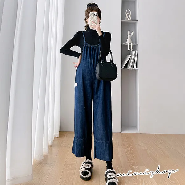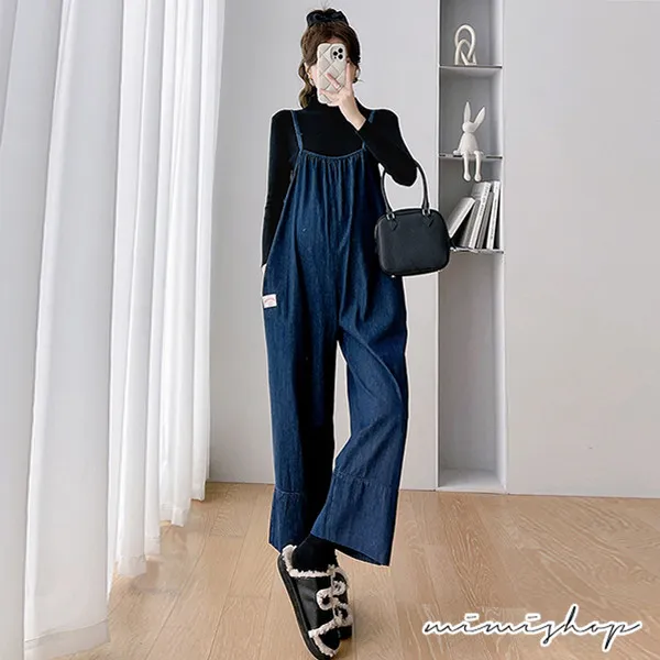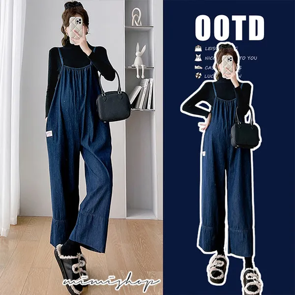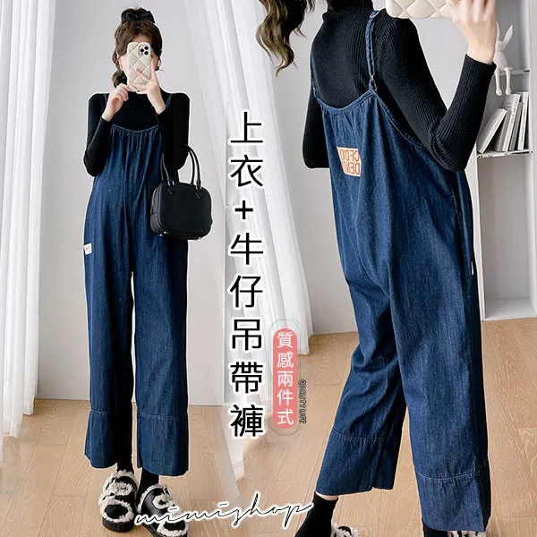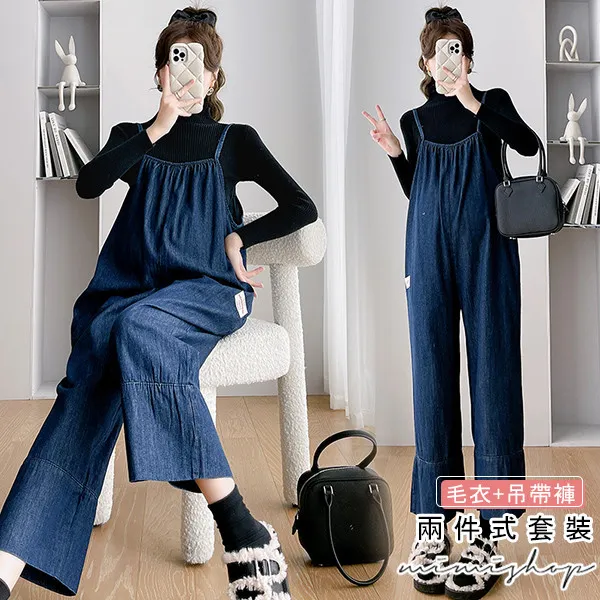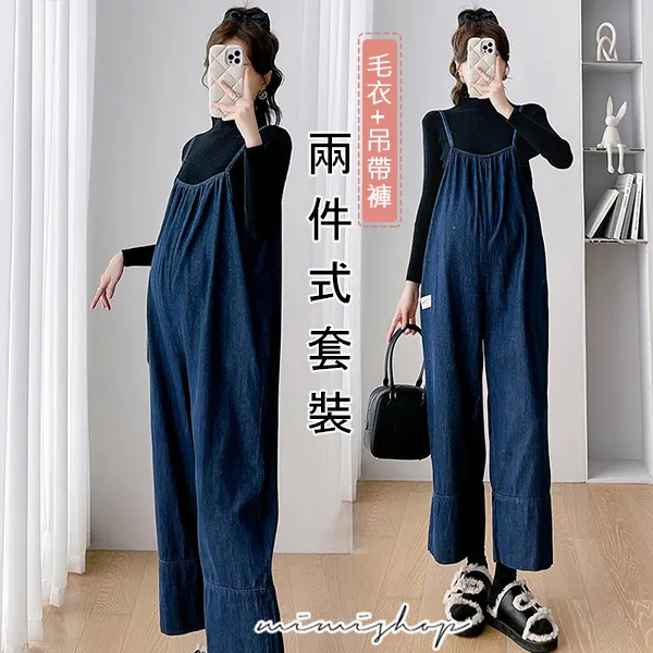 【P31615】送針織衣 寬鬆側口袋牛仔褲 吊帶褲 孕婦套裝
