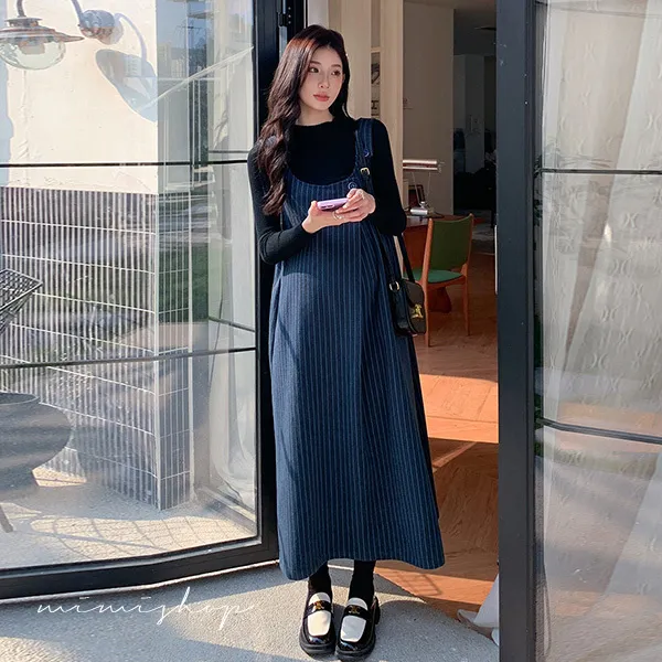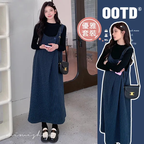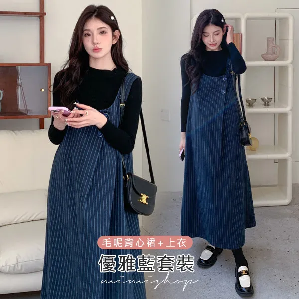 【P31629】優雅主義 質感毛呢背心裙+針織衣 兩件式孕婦洋裝 套裝