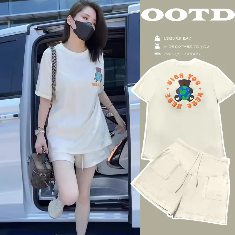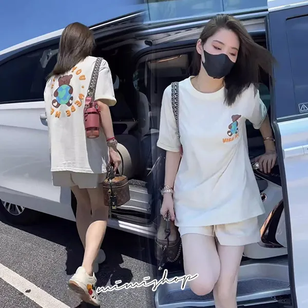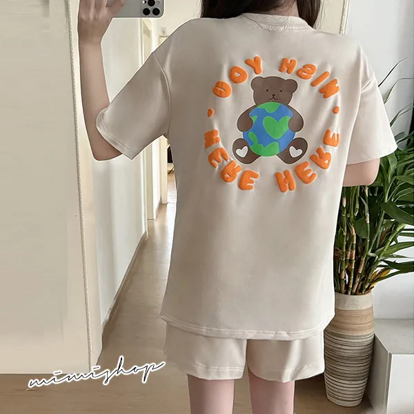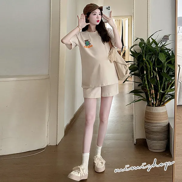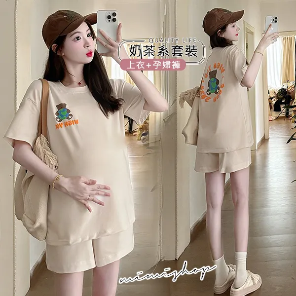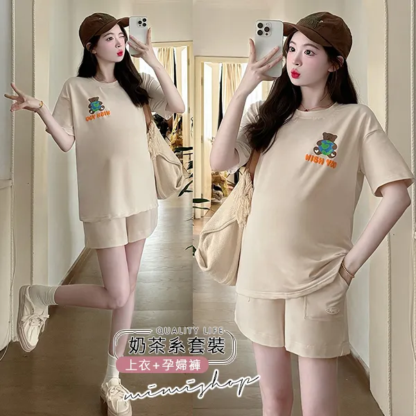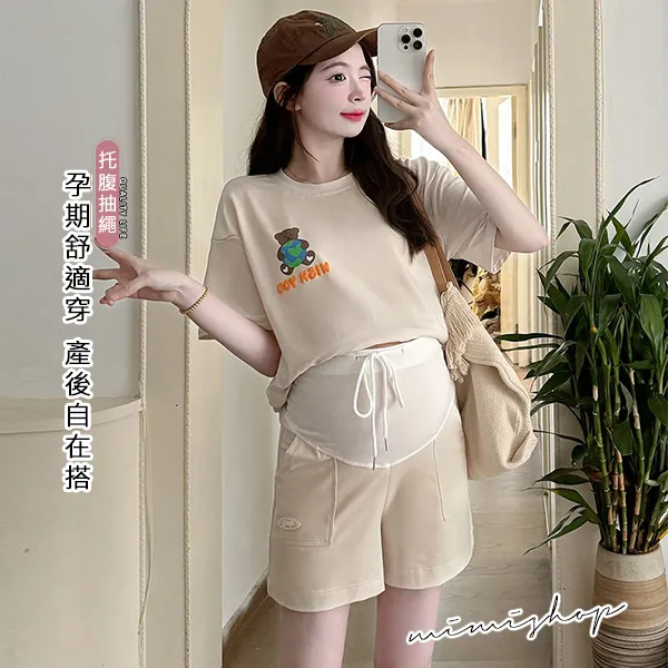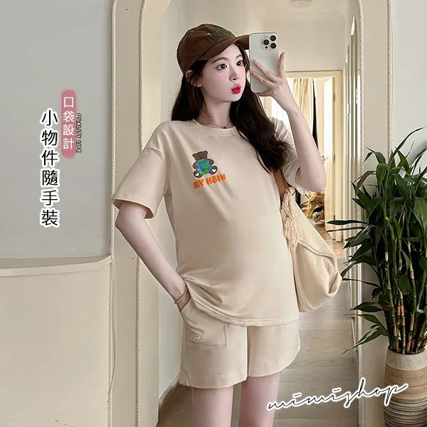 【P31644】Wish you兩件式 優質小熊上衣+孕婦短褲 孕婦套裝