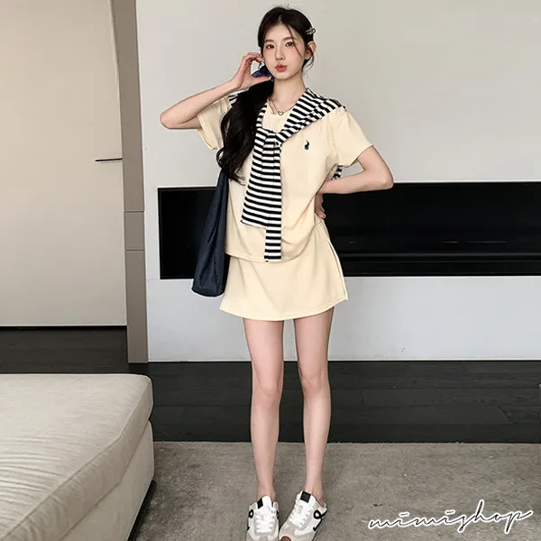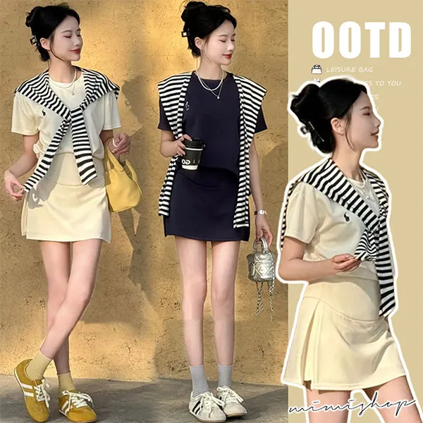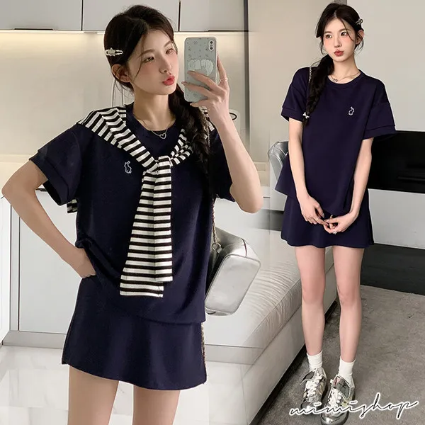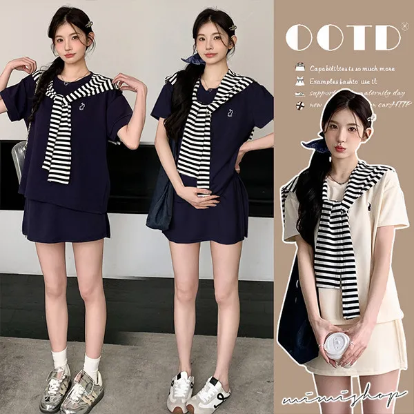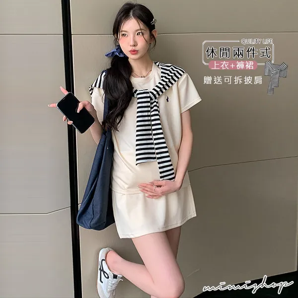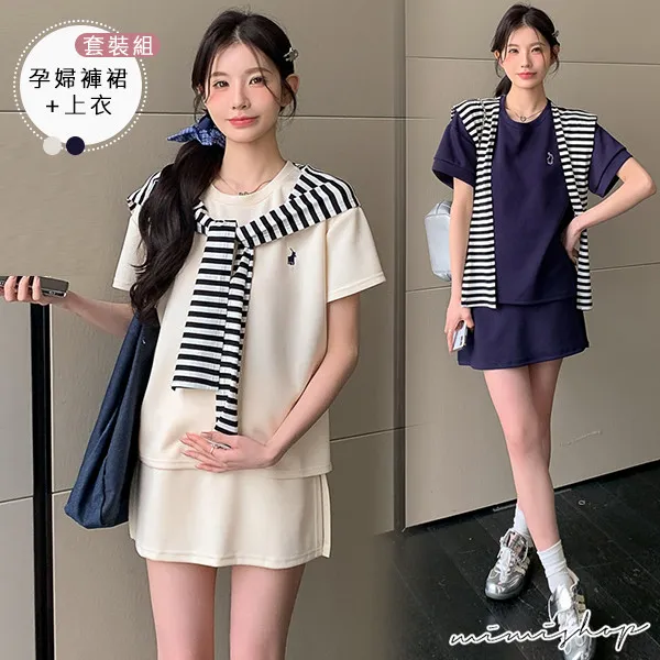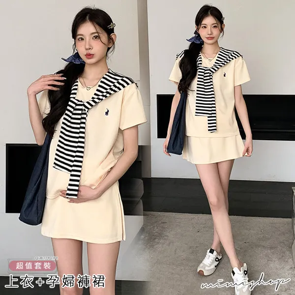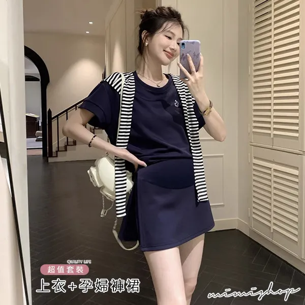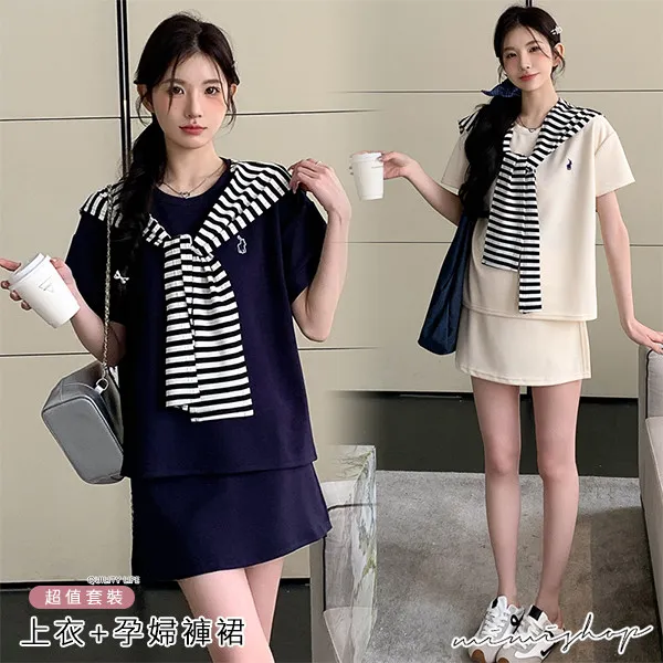 【P31711】超值套裝 送披肩 涼感彈力孕婦套裝 寬版上衣+孕婦褲裙