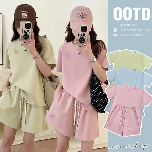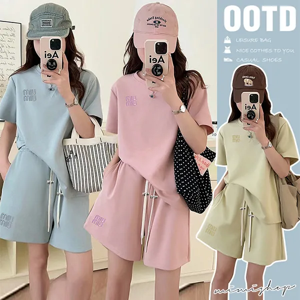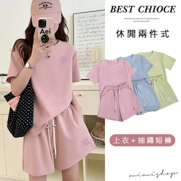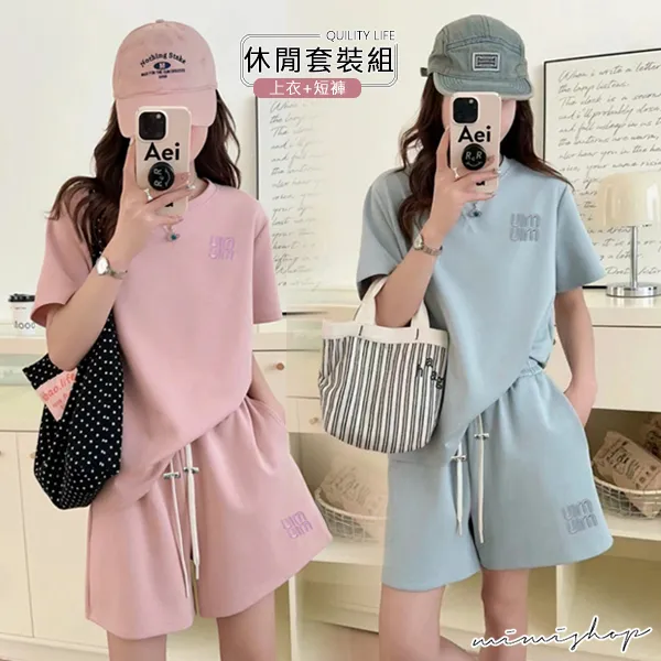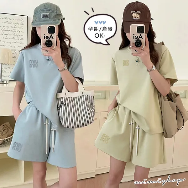 【P31713】自然純色 美式休閒字母套裝 上衣+孕婦褲 兩件式