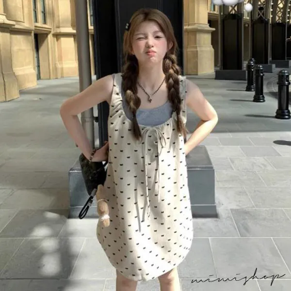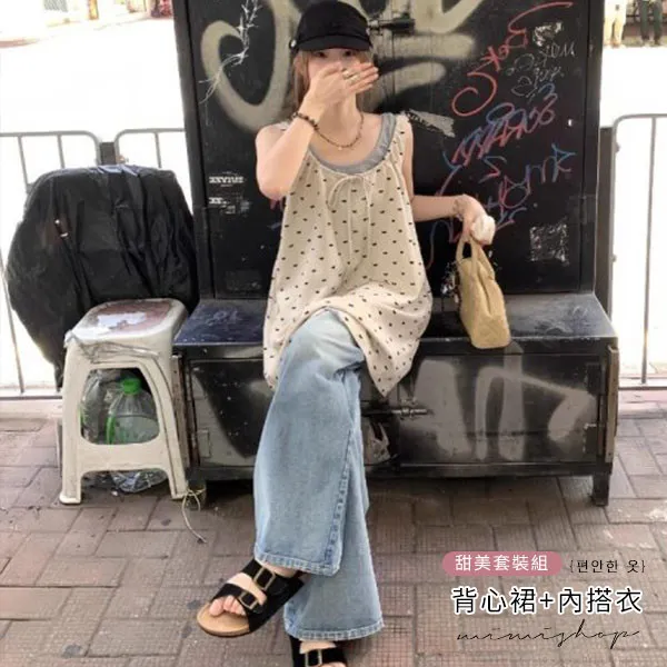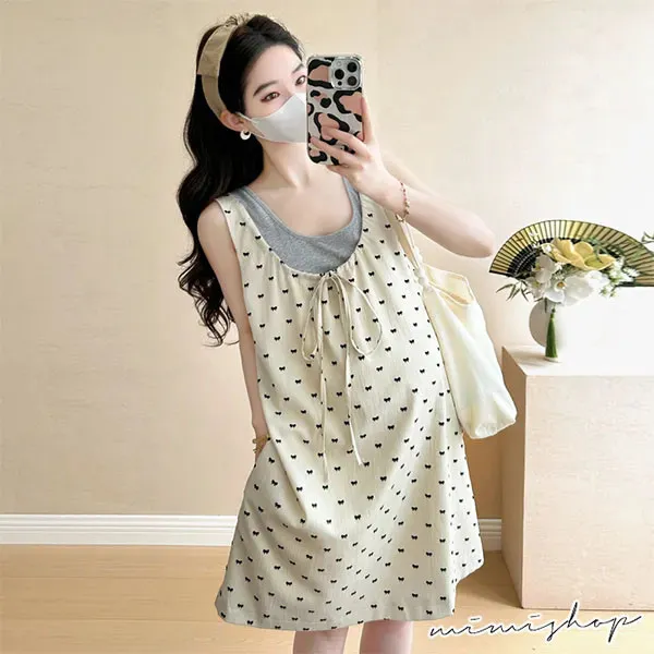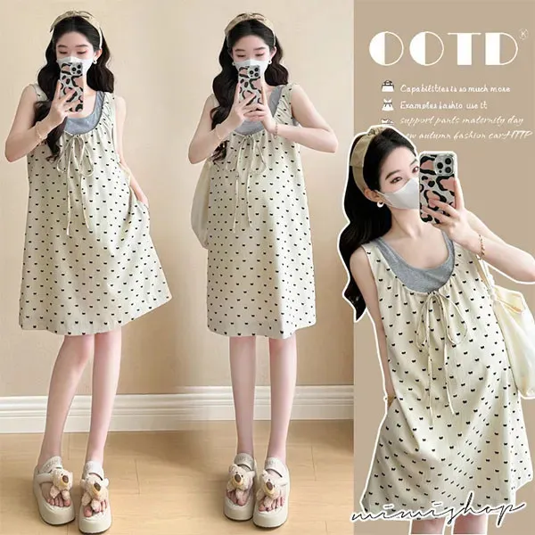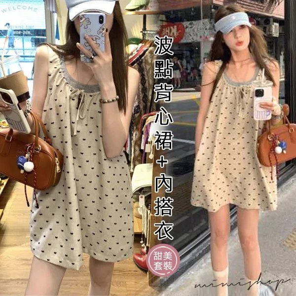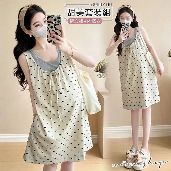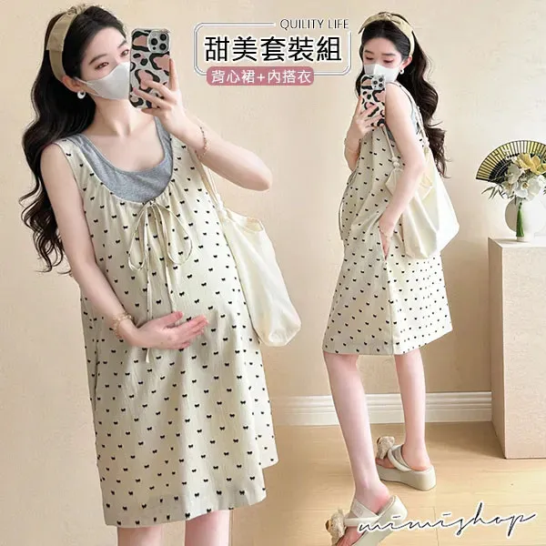 【P31717】韓風甜美 兩件式 波點背心裙+內搭衣 孕婦短洋 不限孕期