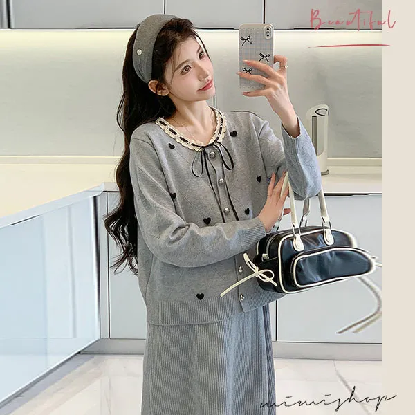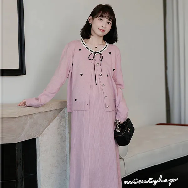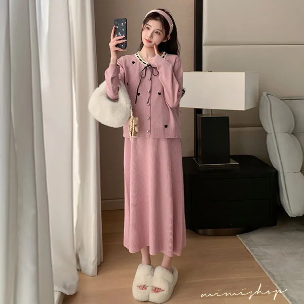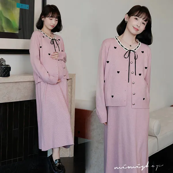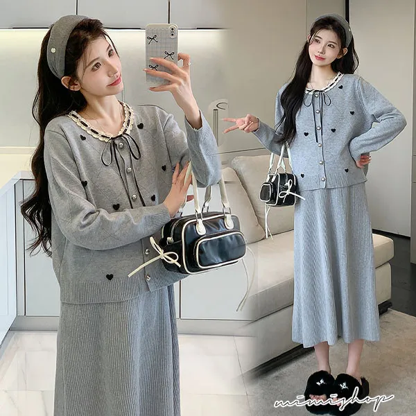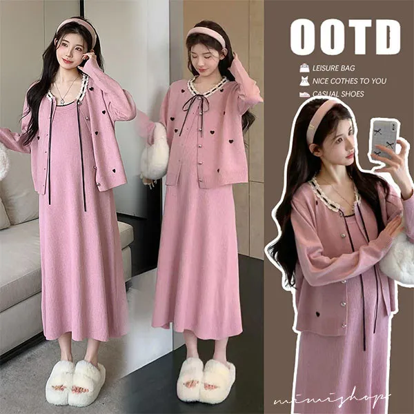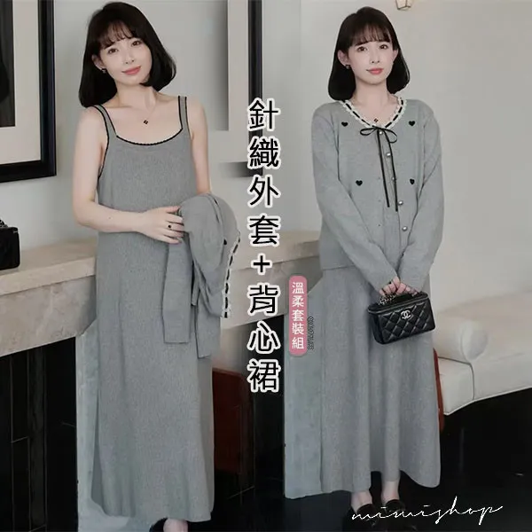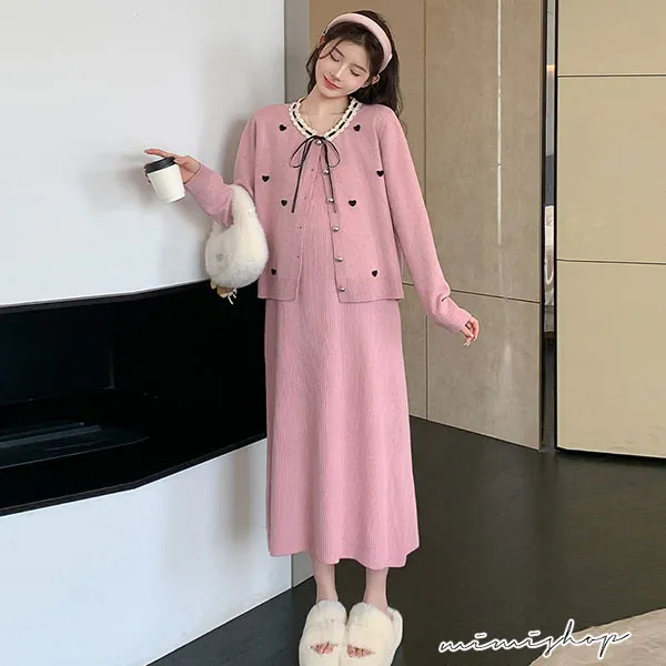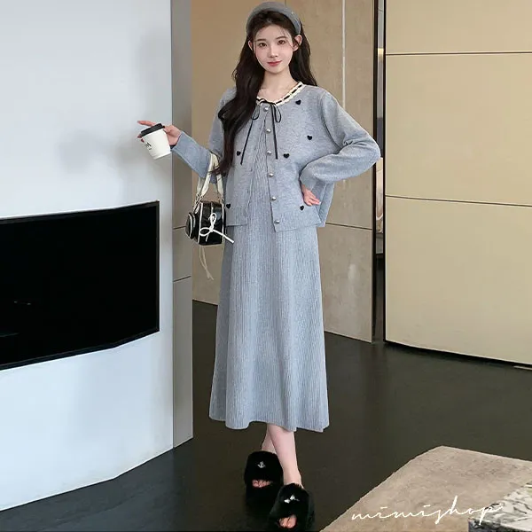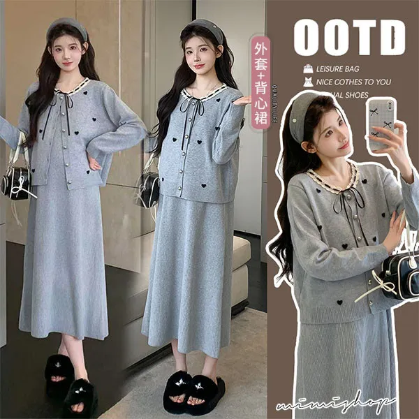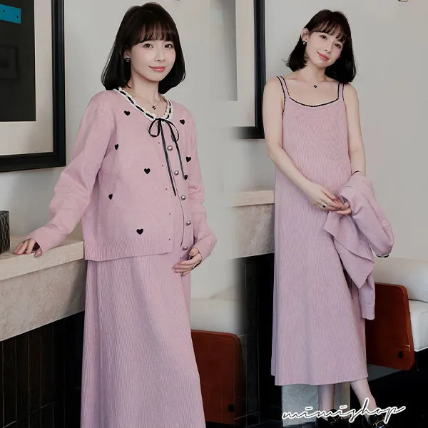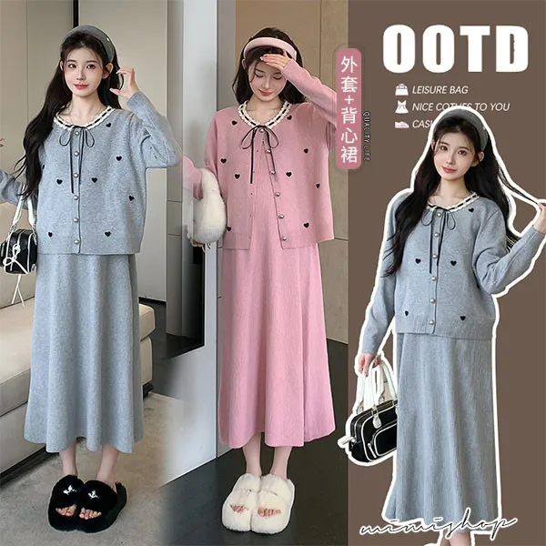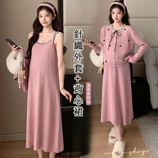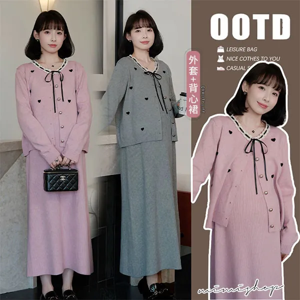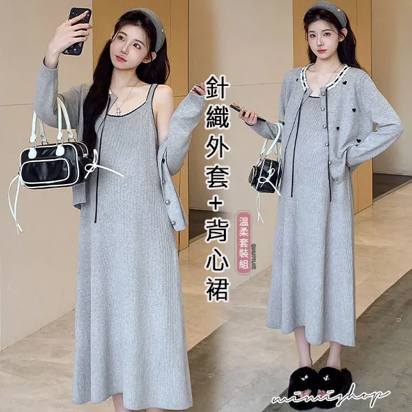 【P31729】溫柔美感 兩件式 小愛心針織外套+背心裙 孕婦套裝
