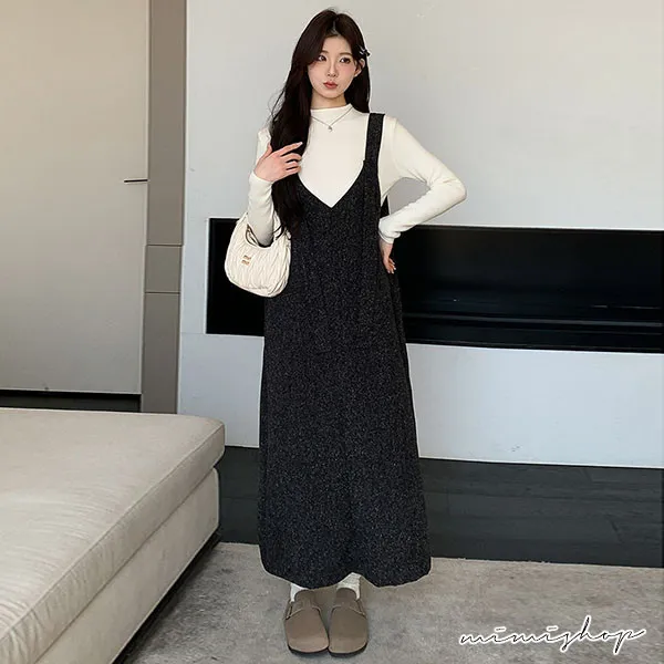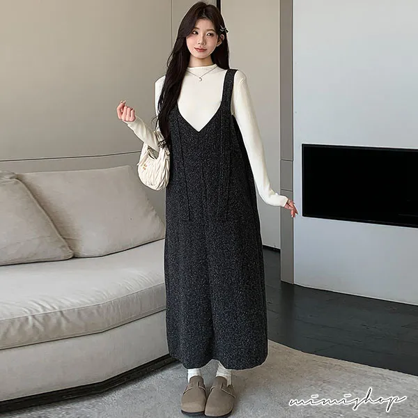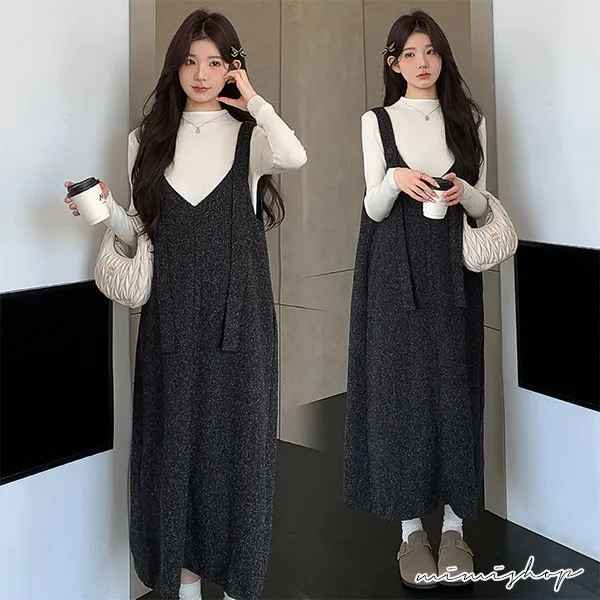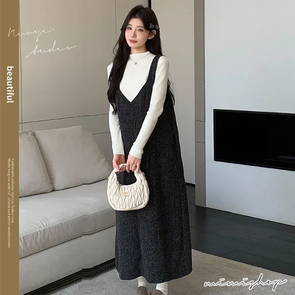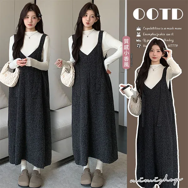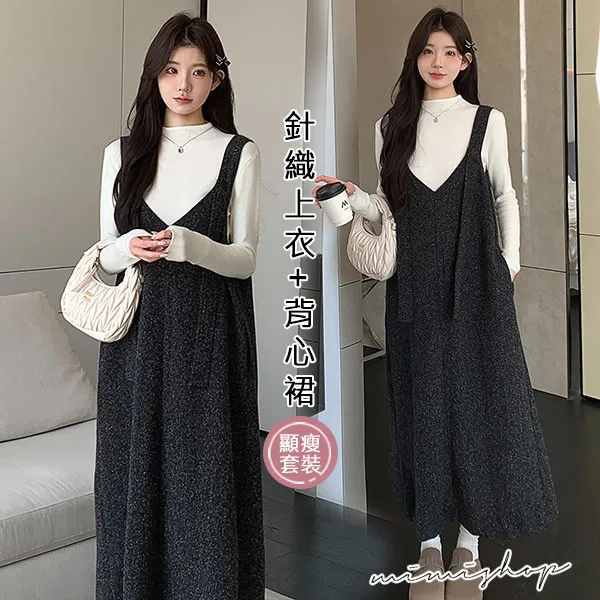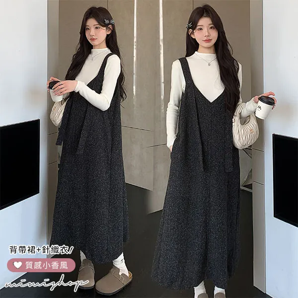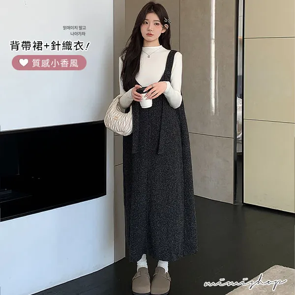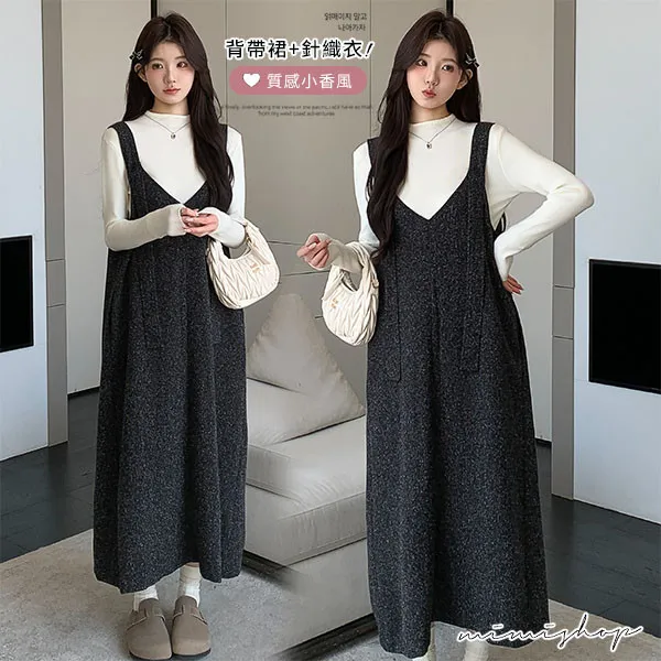 【P31733】優雅大方 兩件式 小香質感背帶裙+針織衣 孕婦洋裝 套裝