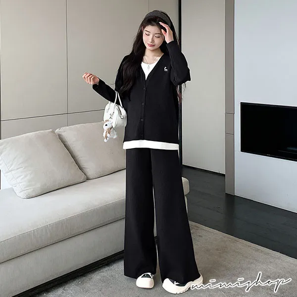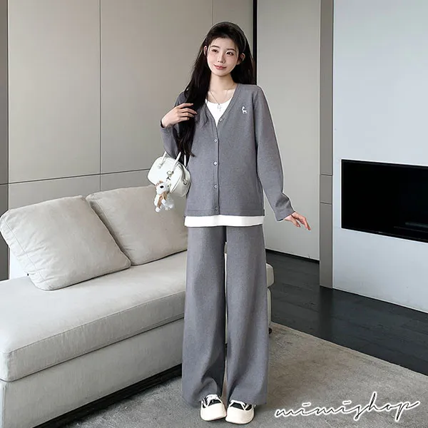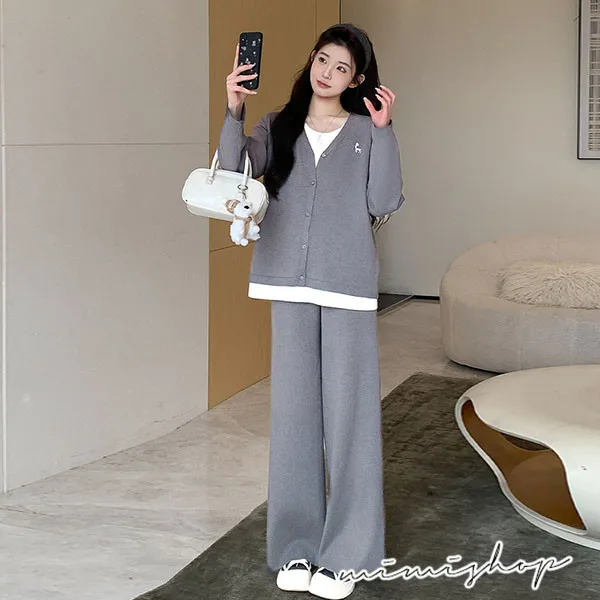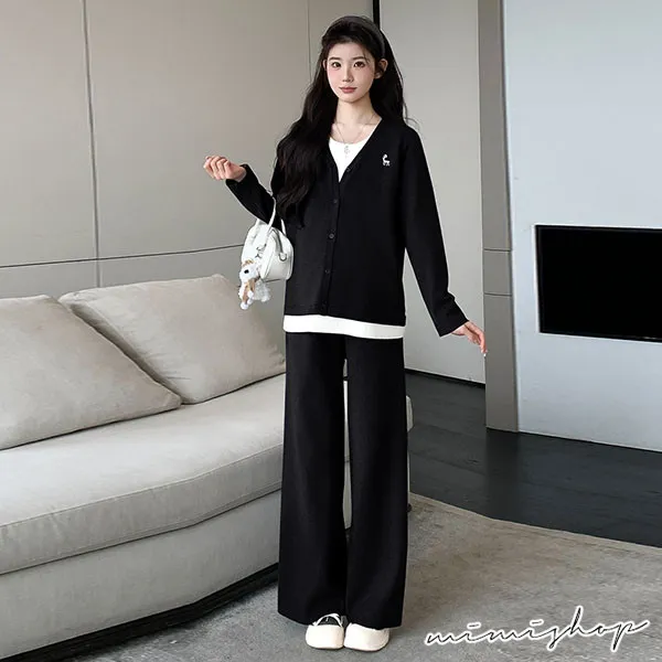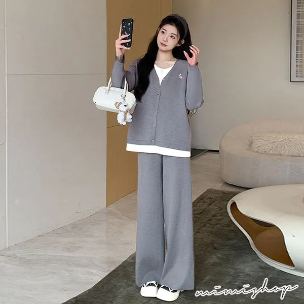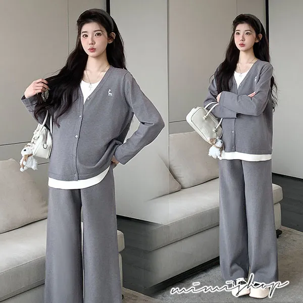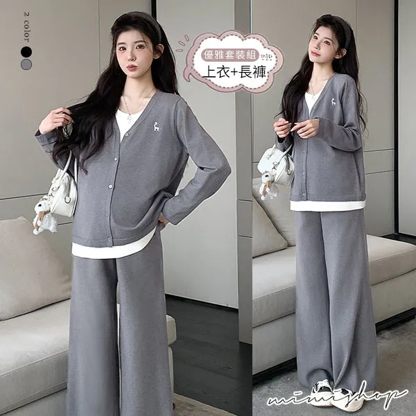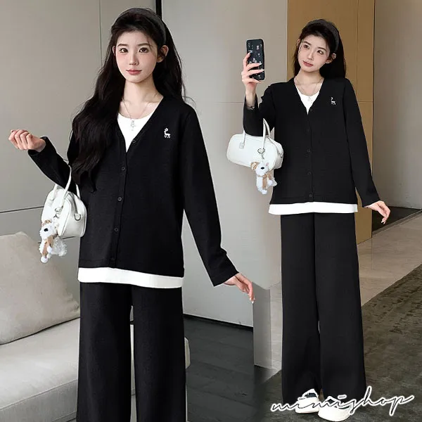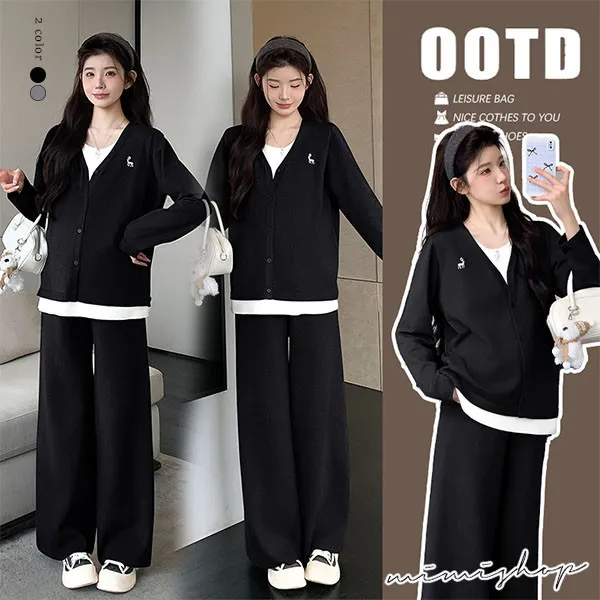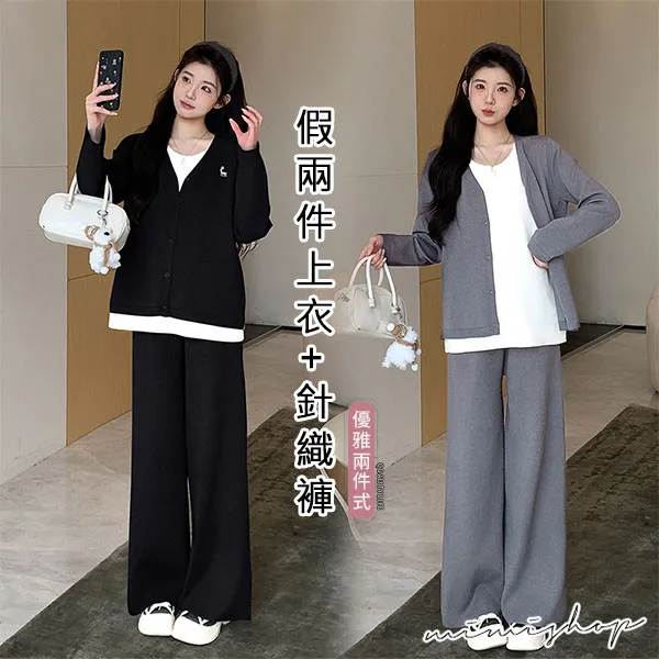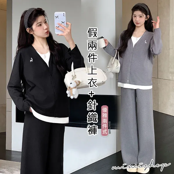 【P31742】簡約優雅 超值套裝 保暖假兩件刺繡針織衣+休閒褲 孕婦套裝