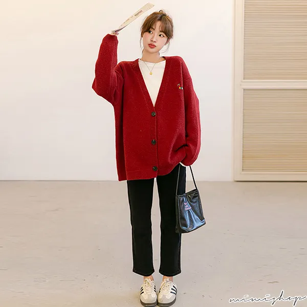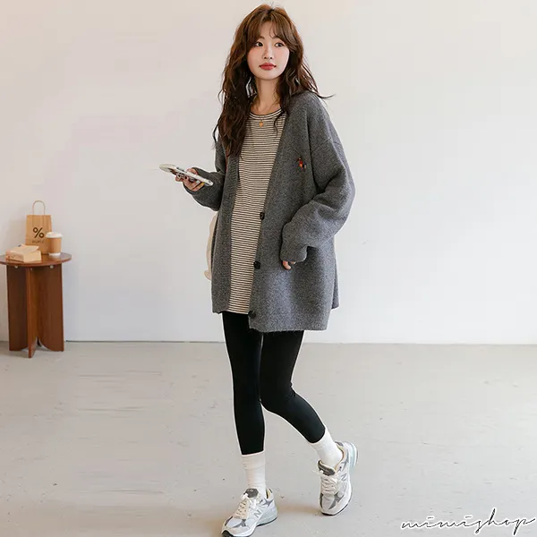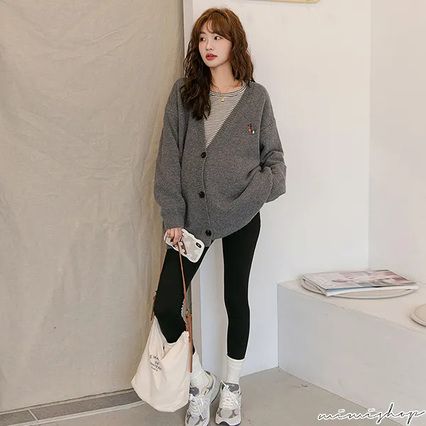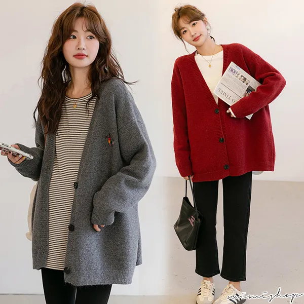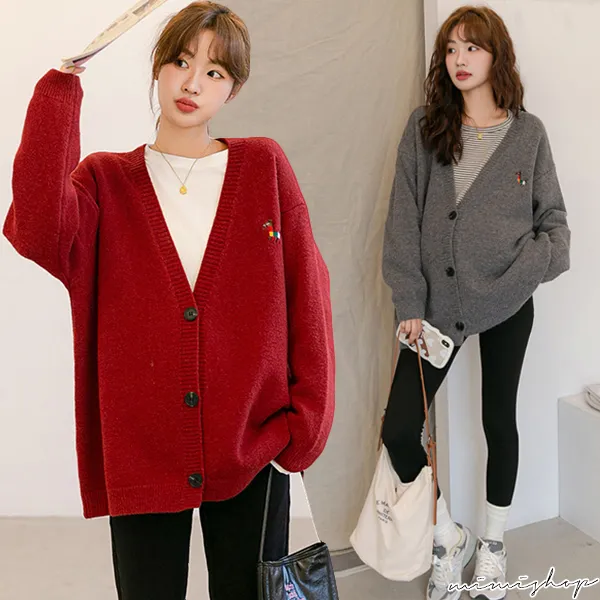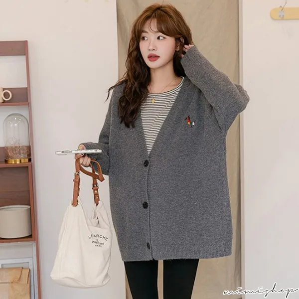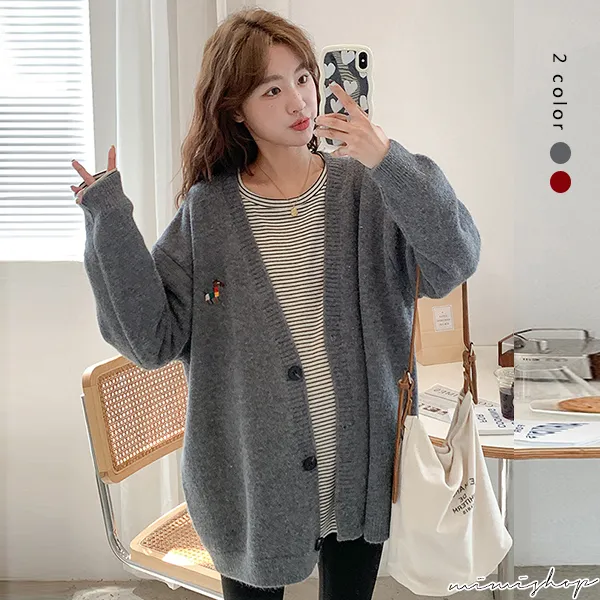 【P41153】保暖修飾 刺繡小馬針織毛衣外套 寬鬆實穿