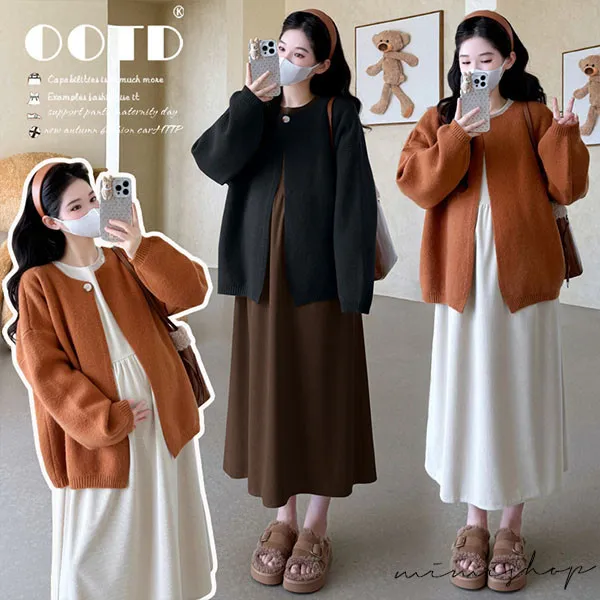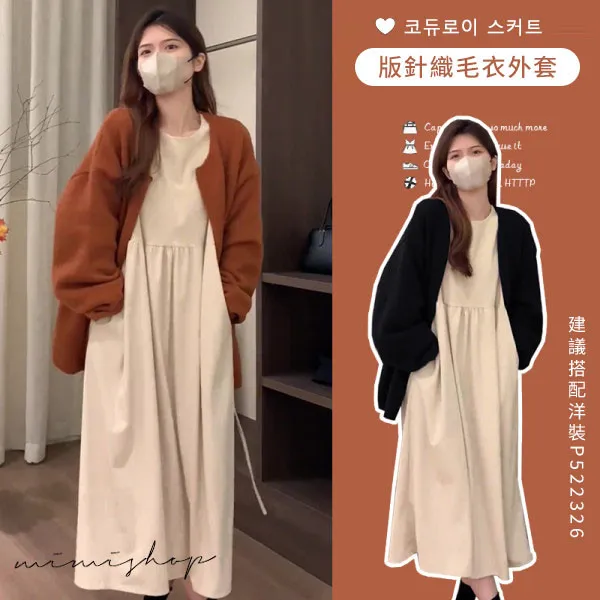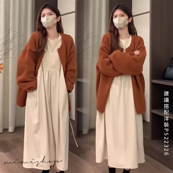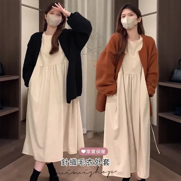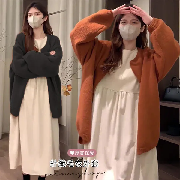 【P41154】溫暖美好 寬鬆長版針織毛衣外套 厚實保暖