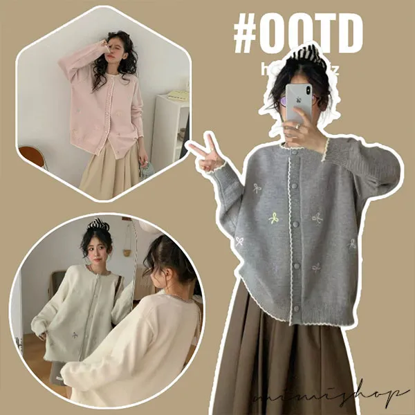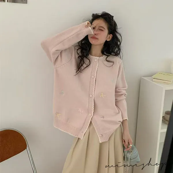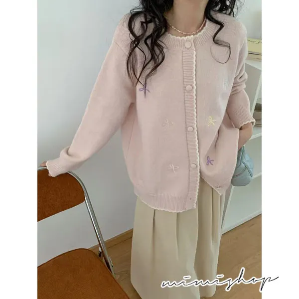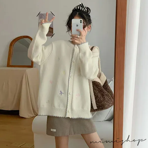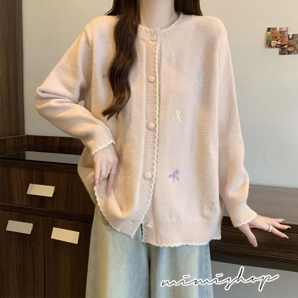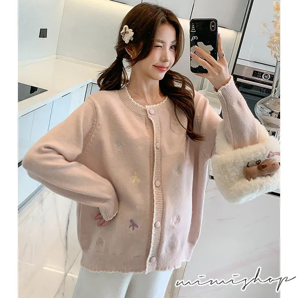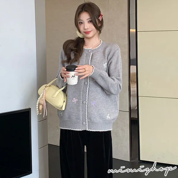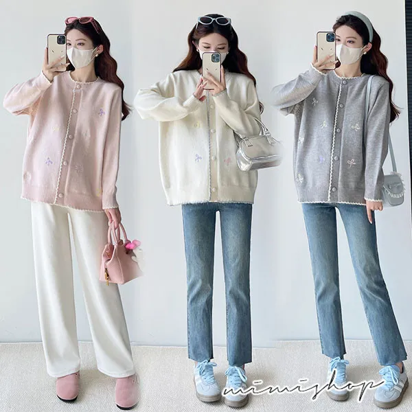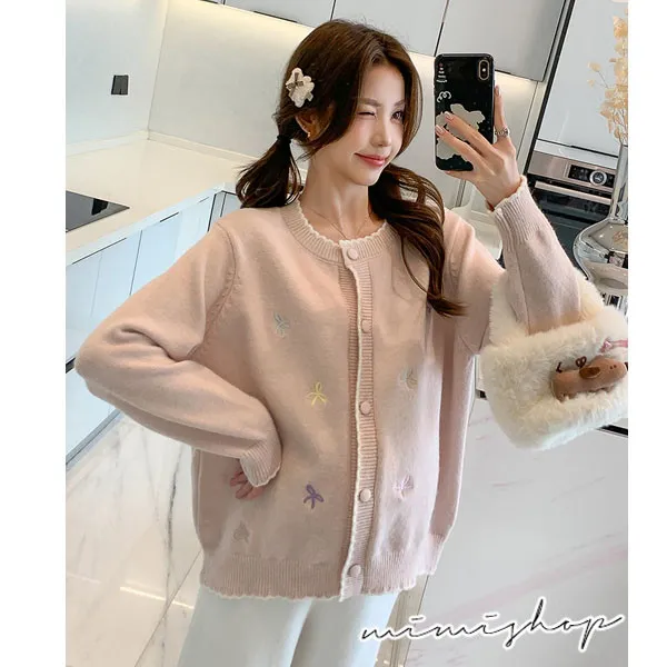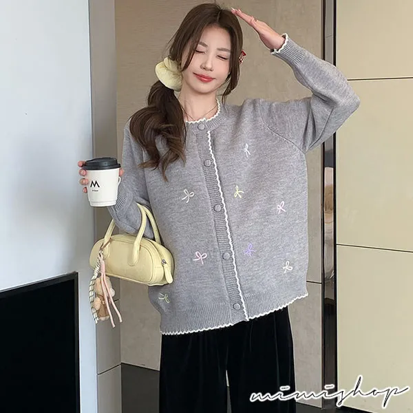 【P41156】日系質感 甜美刺繡針織開衫 毛衣外套 不限孕期