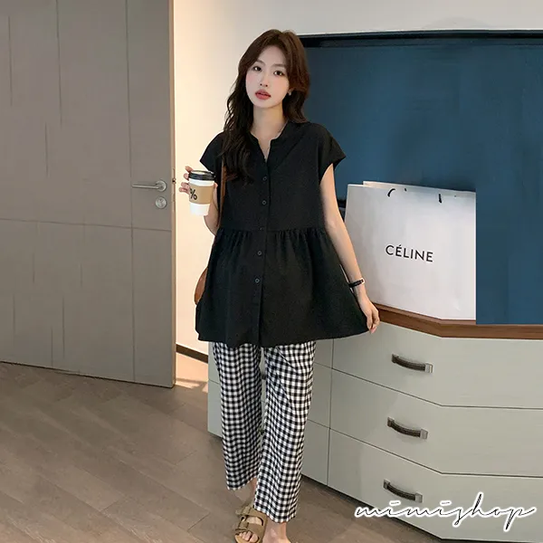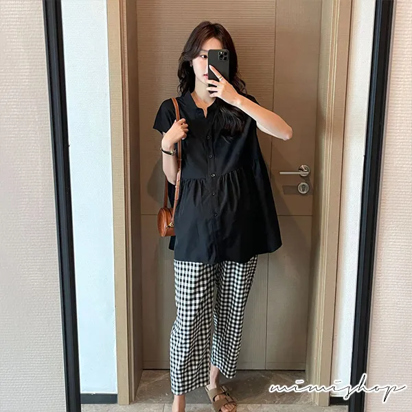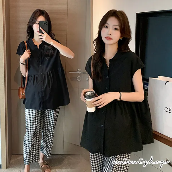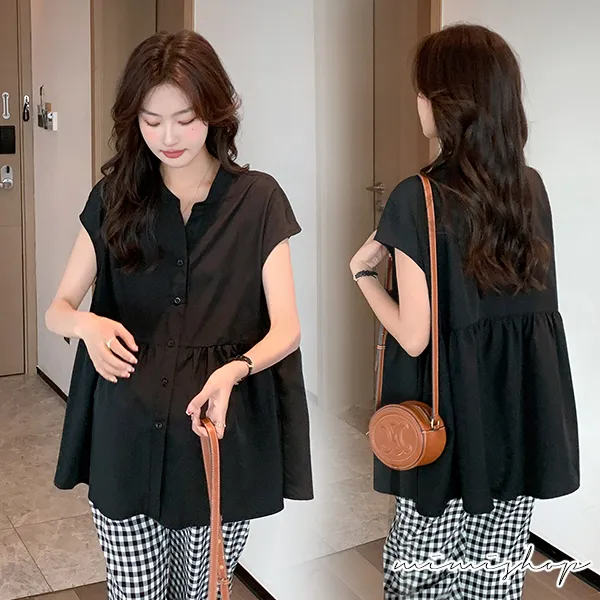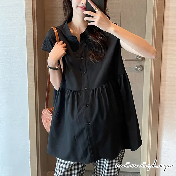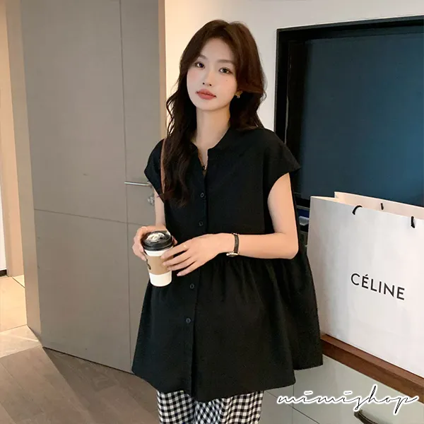 【P511120】簡約百搭 純色小V領寬襬上衣 開扣哺乳衣