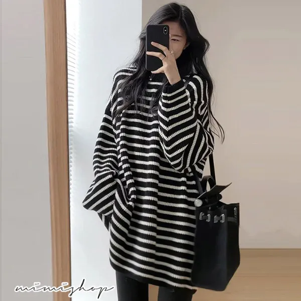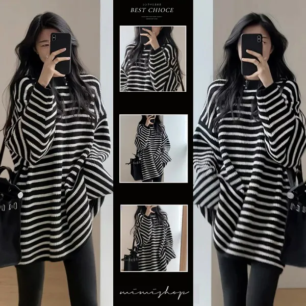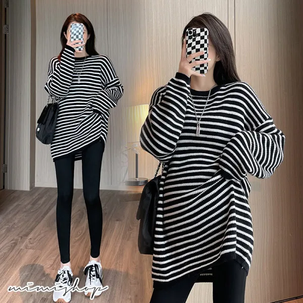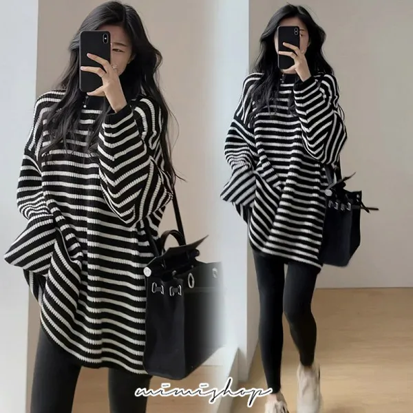 【P511126】韓范個性 寬鬆條紋針織毛衣 實穿好搭