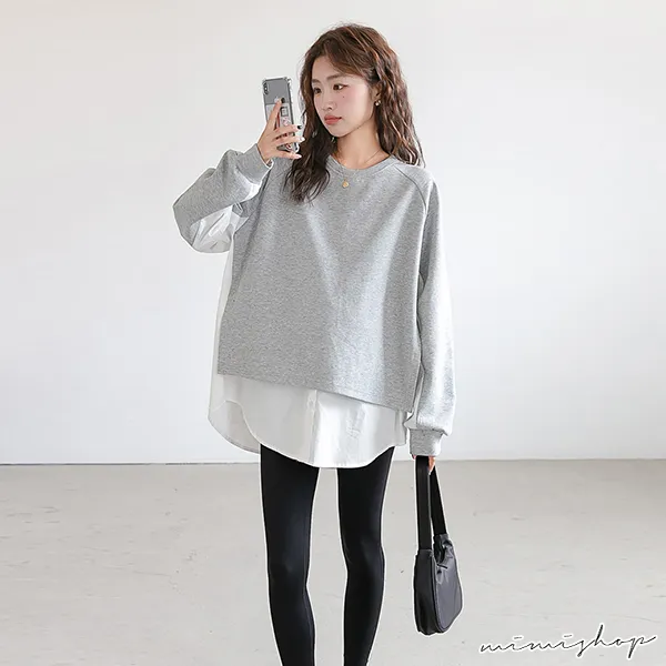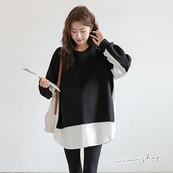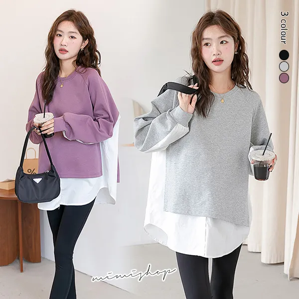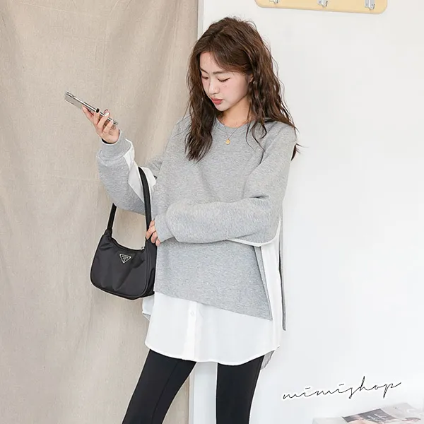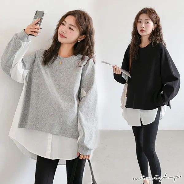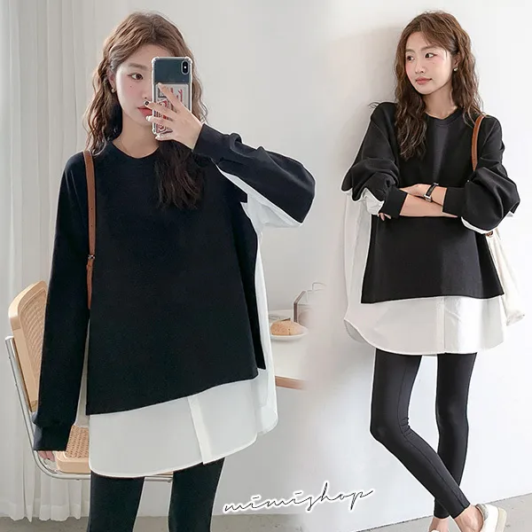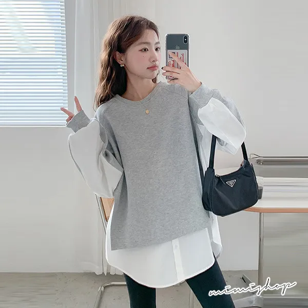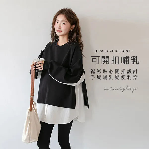 【P511127】韓范設計感 假兩件拼接襯衫 寬版上衣 開扣哺乳衣