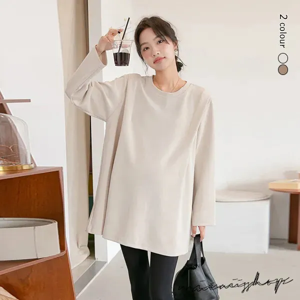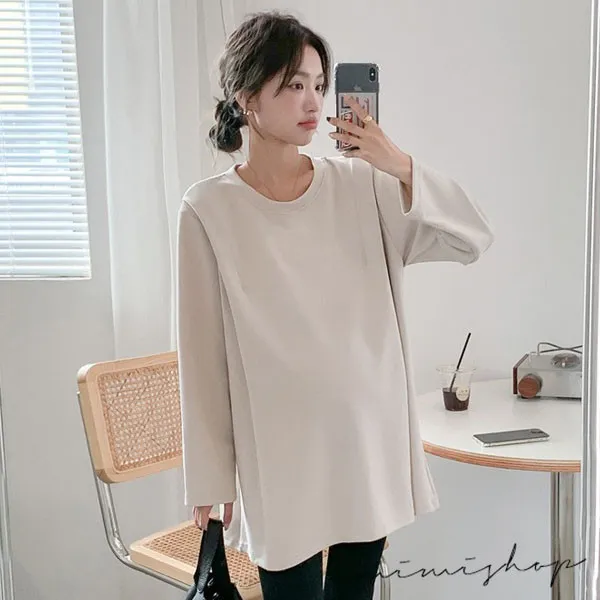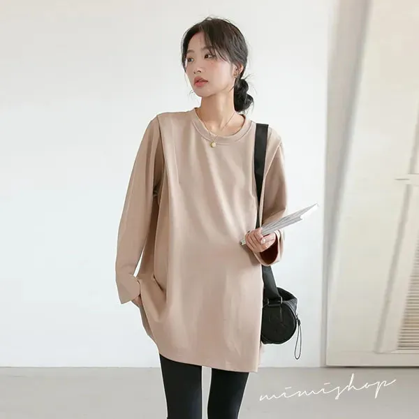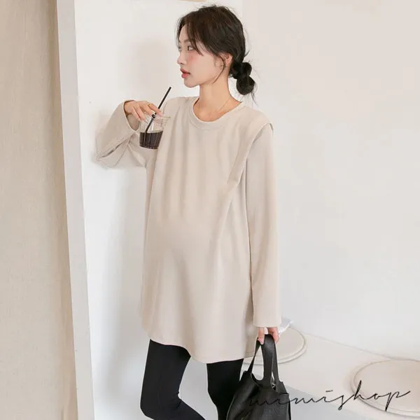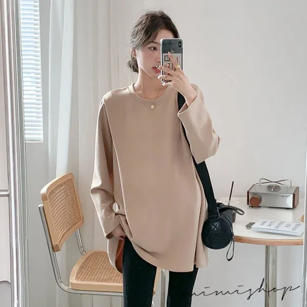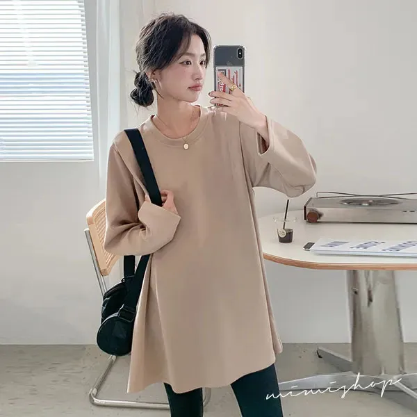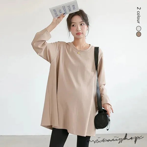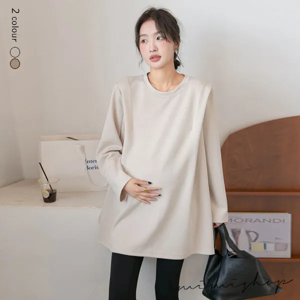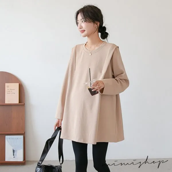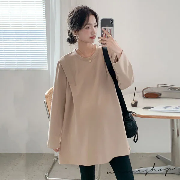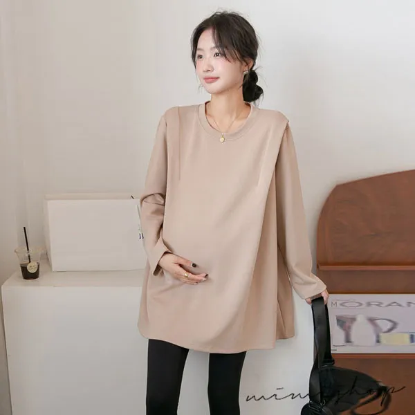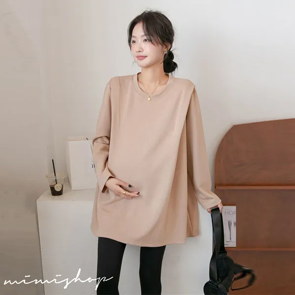 【P511141】顯瘦秘訣 長袖挺版抓褶寬襬上衣 不限孕期
