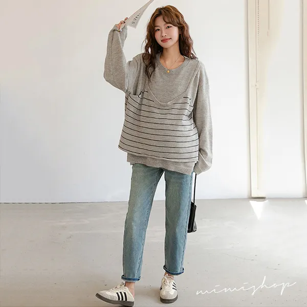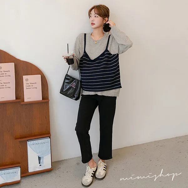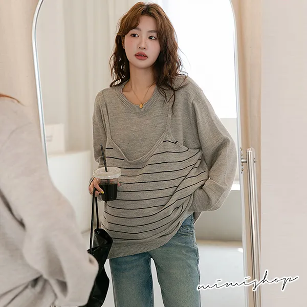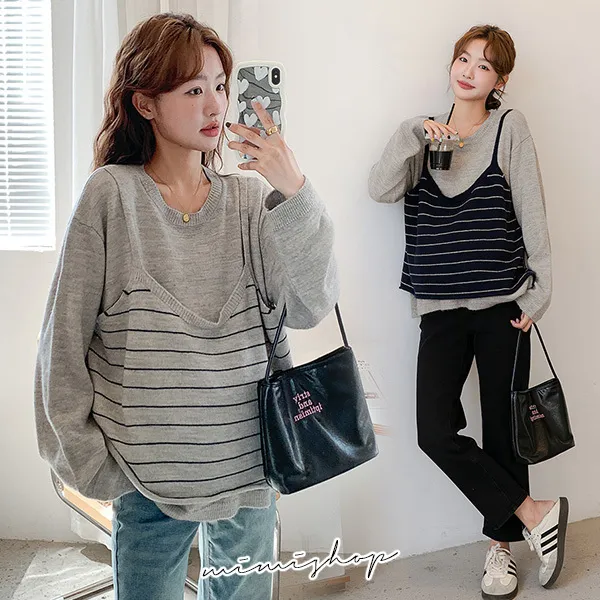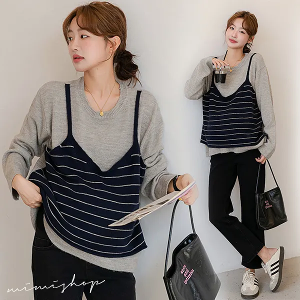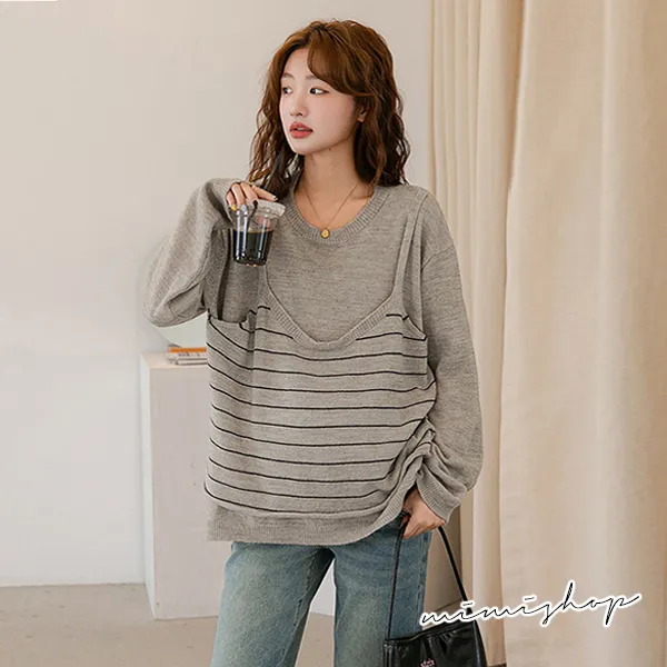 【P511219】溫暖有個性 假兩件針織衣 吊帶背心毛衣 寬鬆版型
