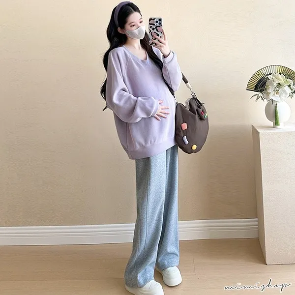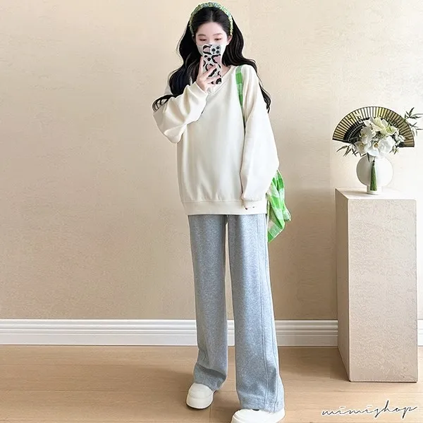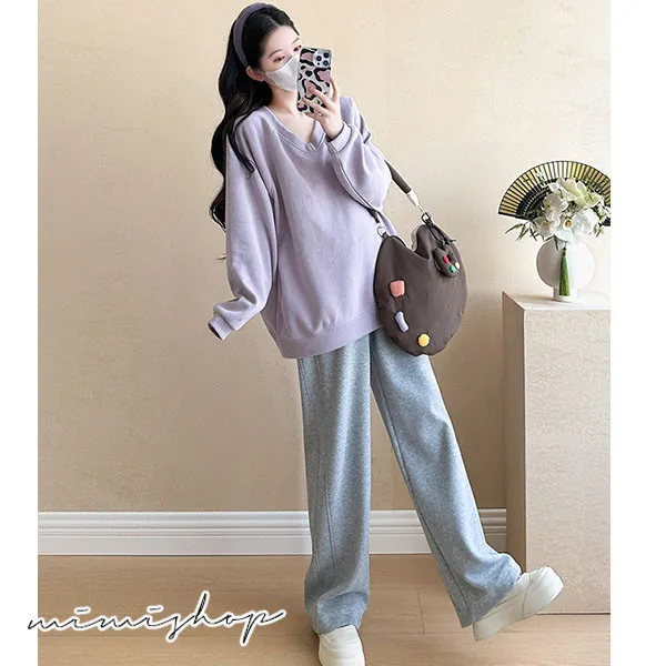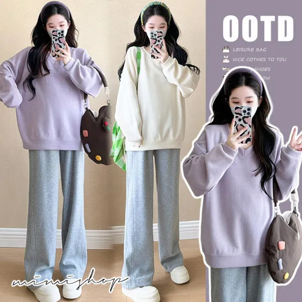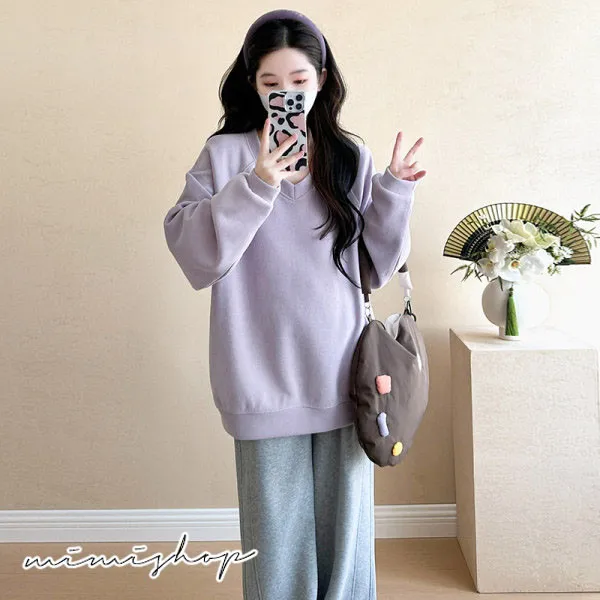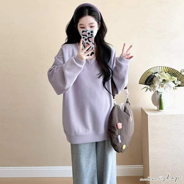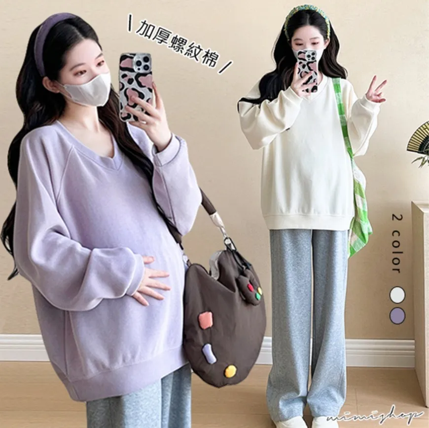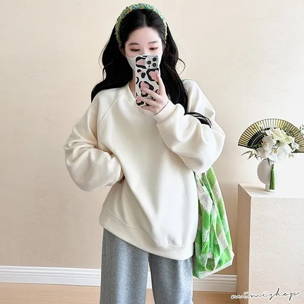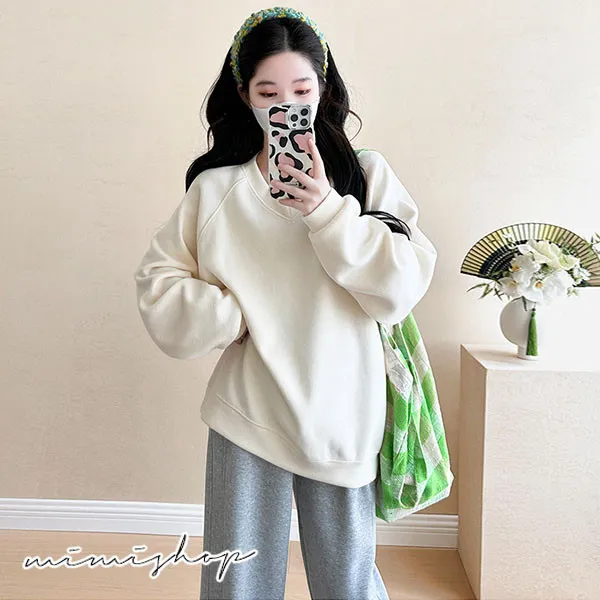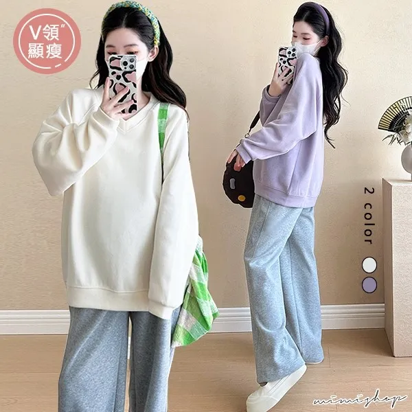 【P511237】顯瘦V領 加厚螺紋棉寬版上衣 舒適百搭