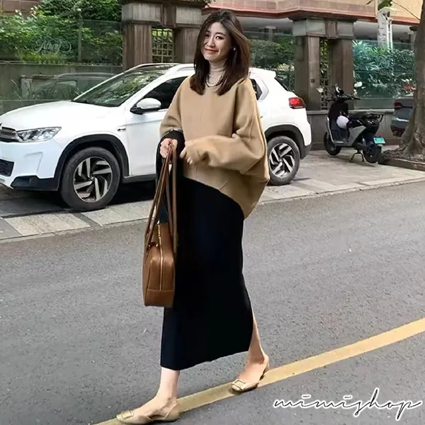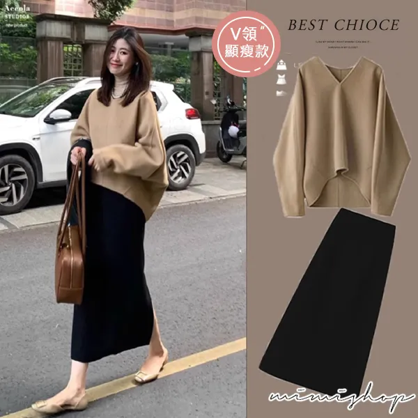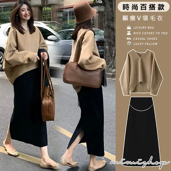 【P511246】時尚有型 顯瘦v領針織毛衣 寬版剪裁 不限孕期
