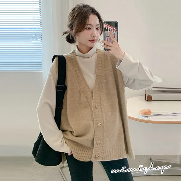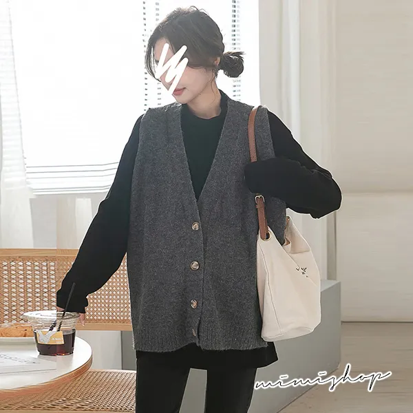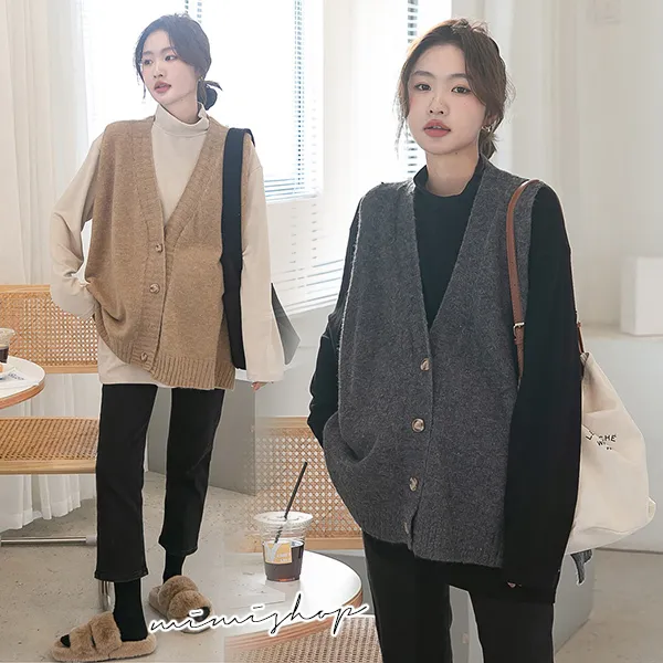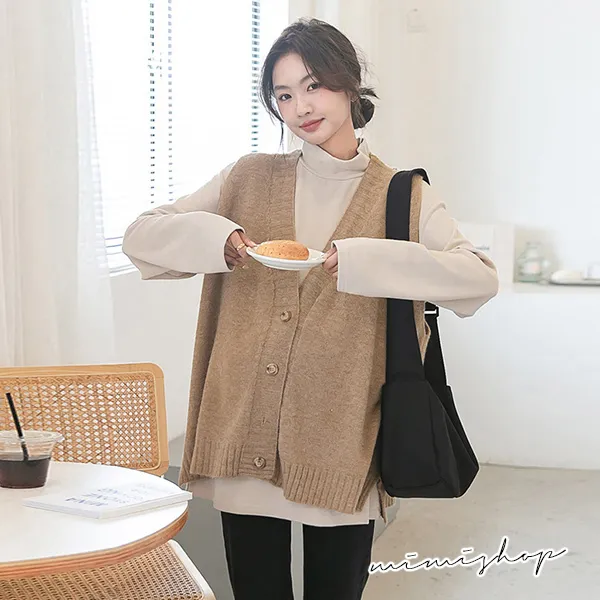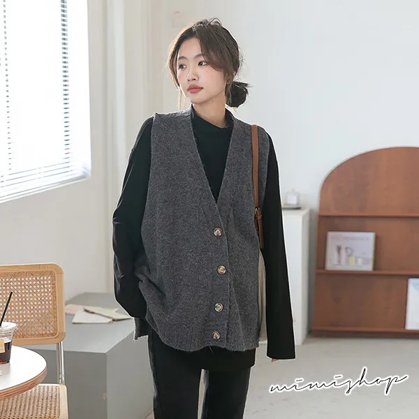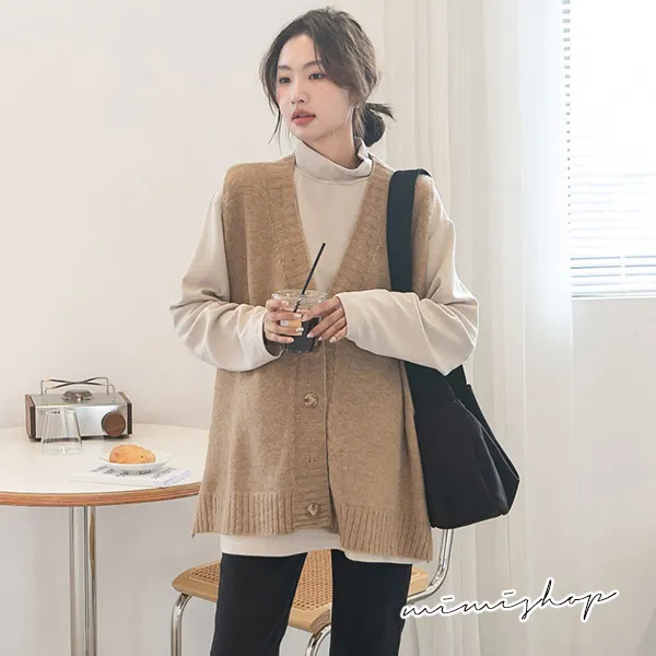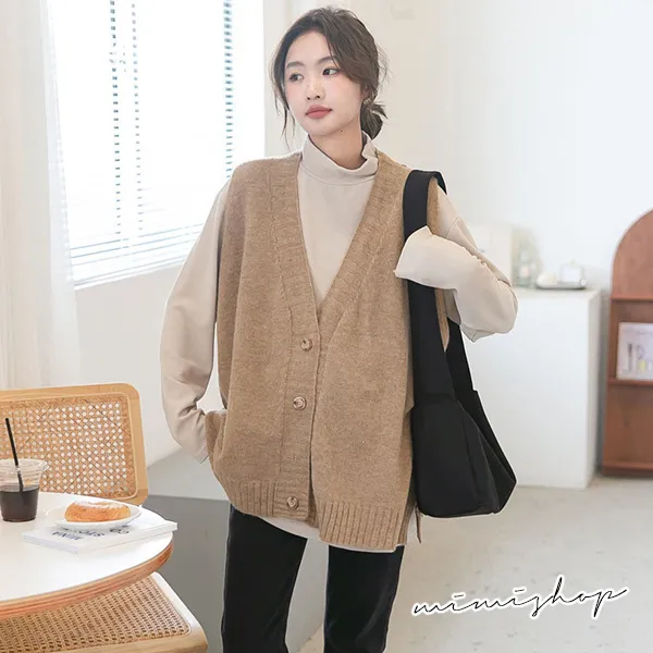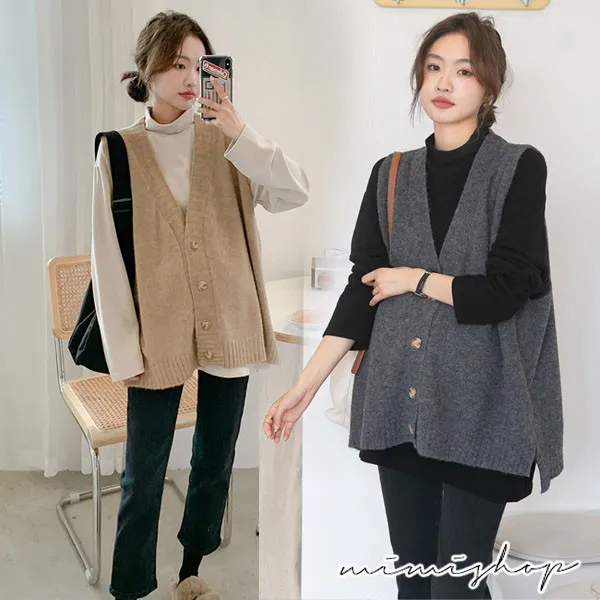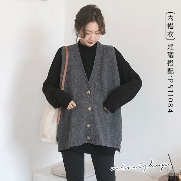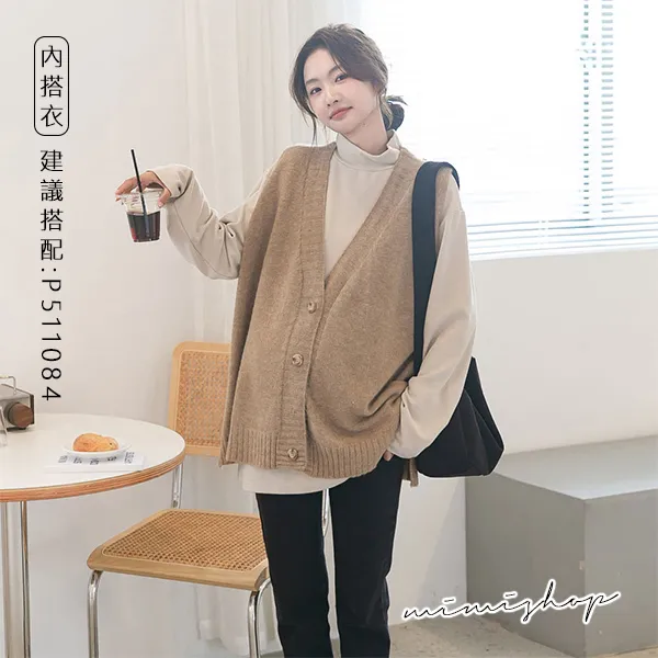 【P511252】修飾百搭 寬版v領扣子毛衣背心 柔感針織 不限孕期