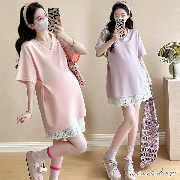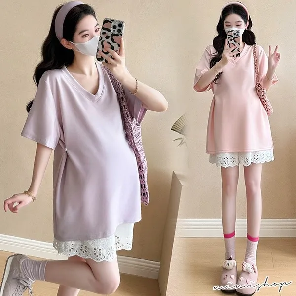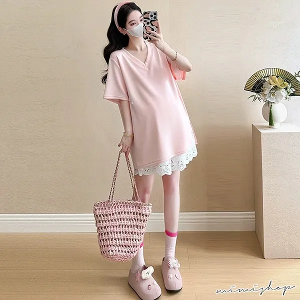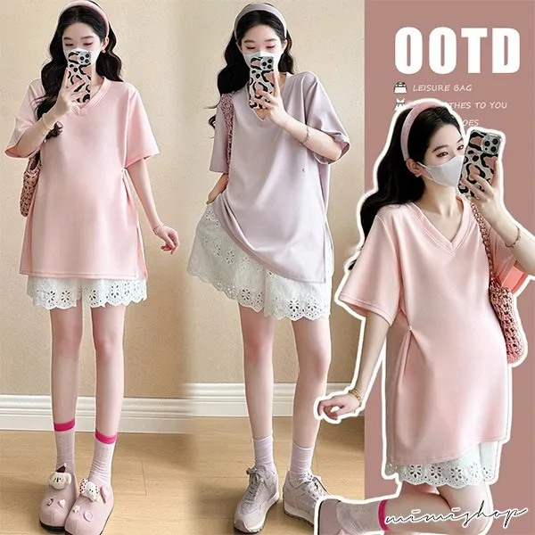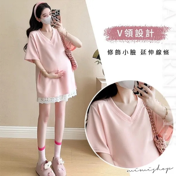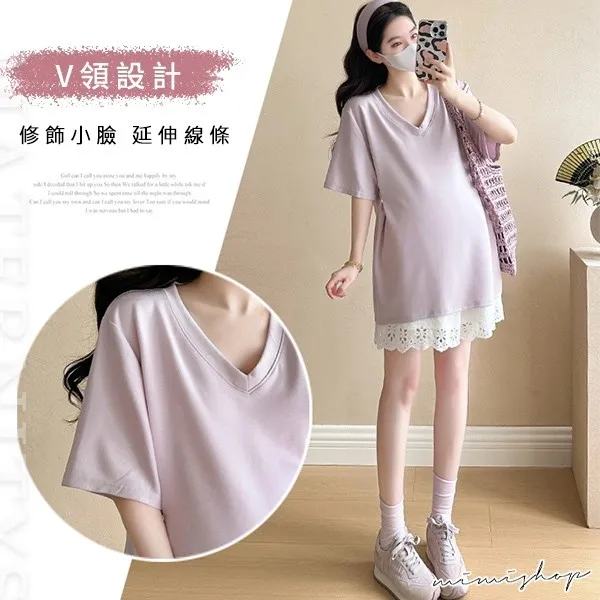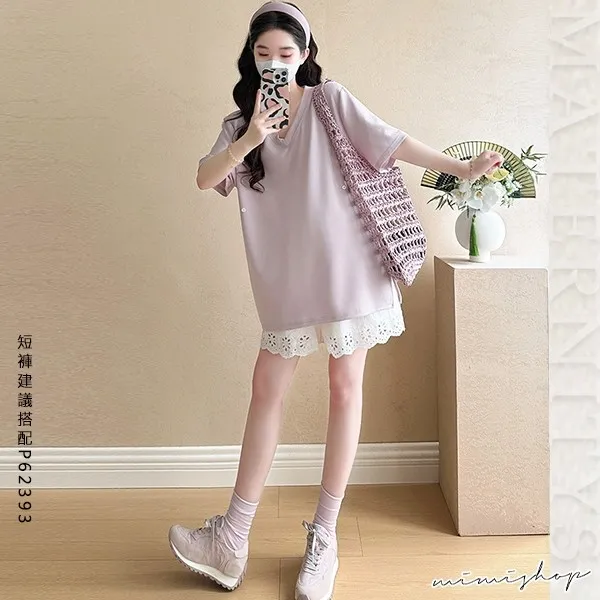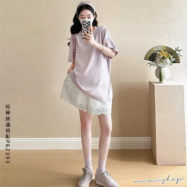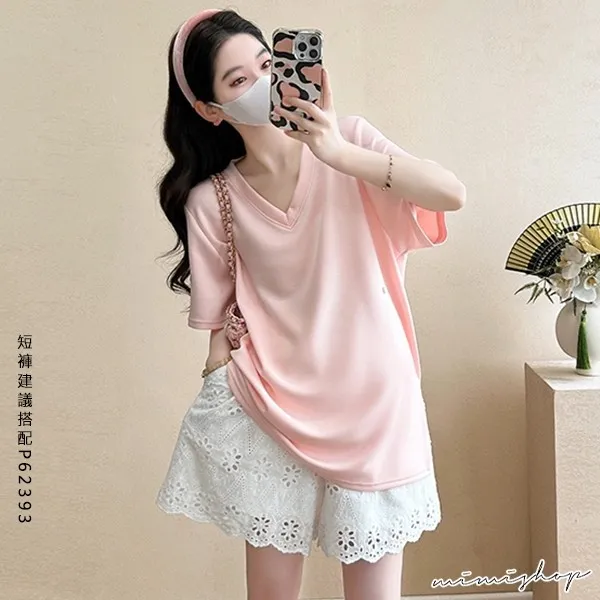 【P511295】 顯瘦v領 涼感寬鬆長上衣 舒適百搭 不限孕期