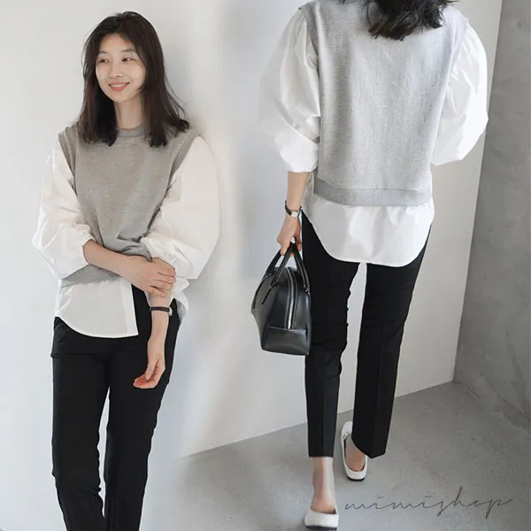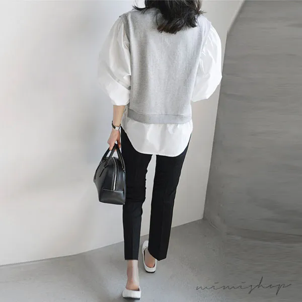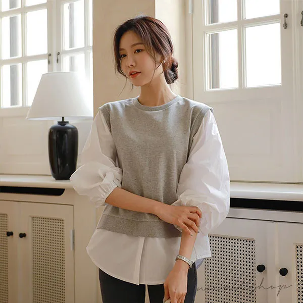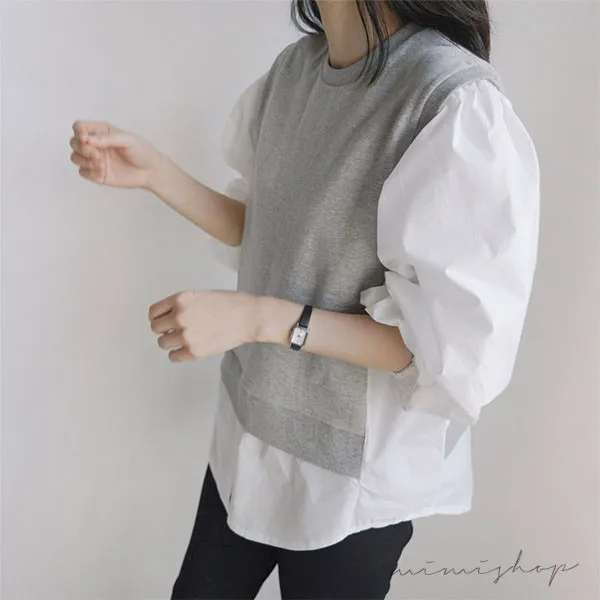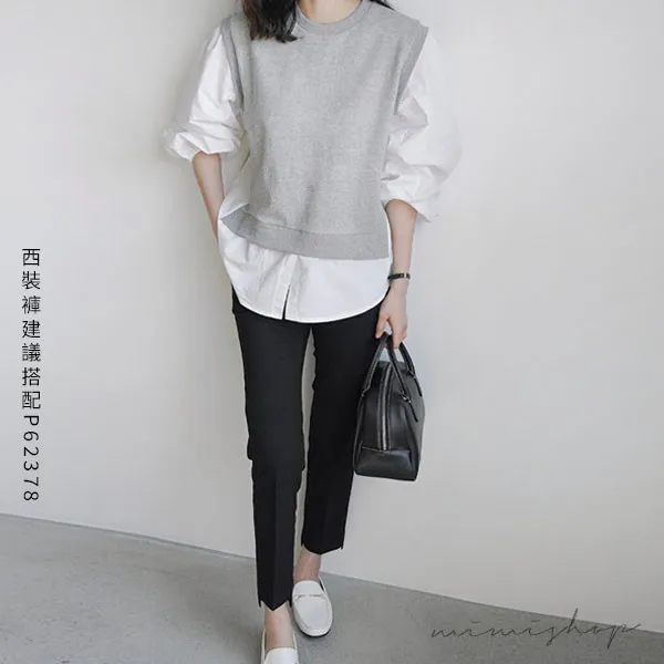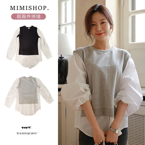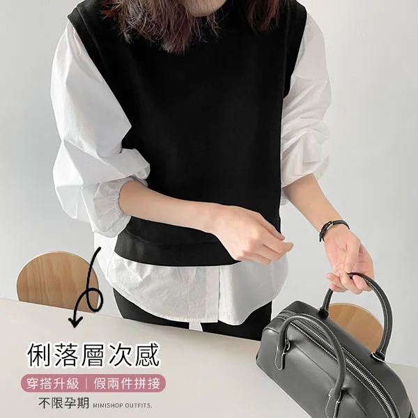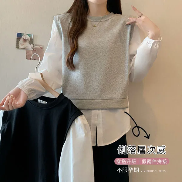 【P511303】穿搭升級 假兩件拼接上衣 寬版襯衫 不限孕期