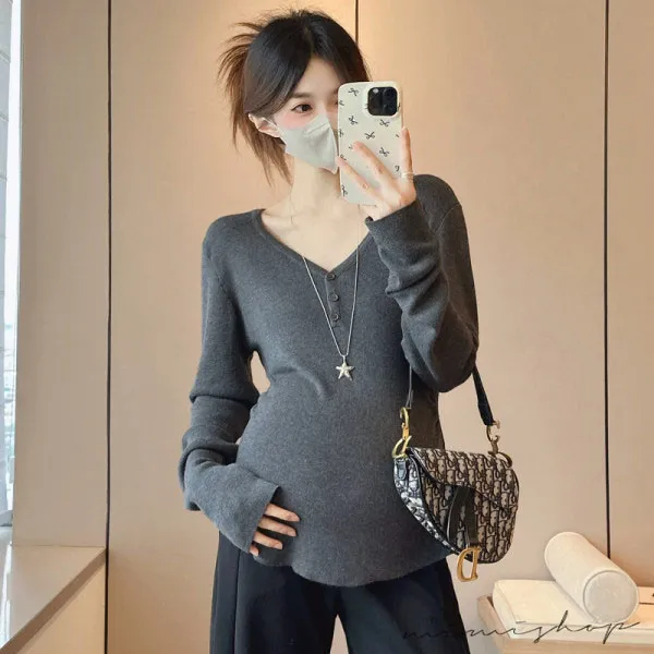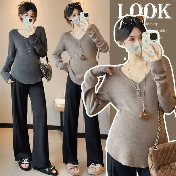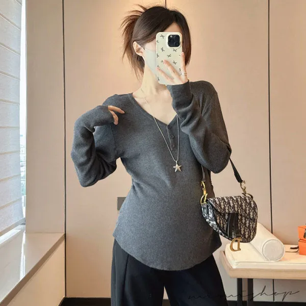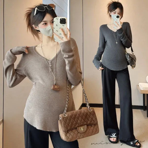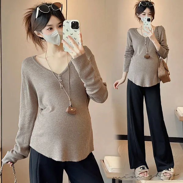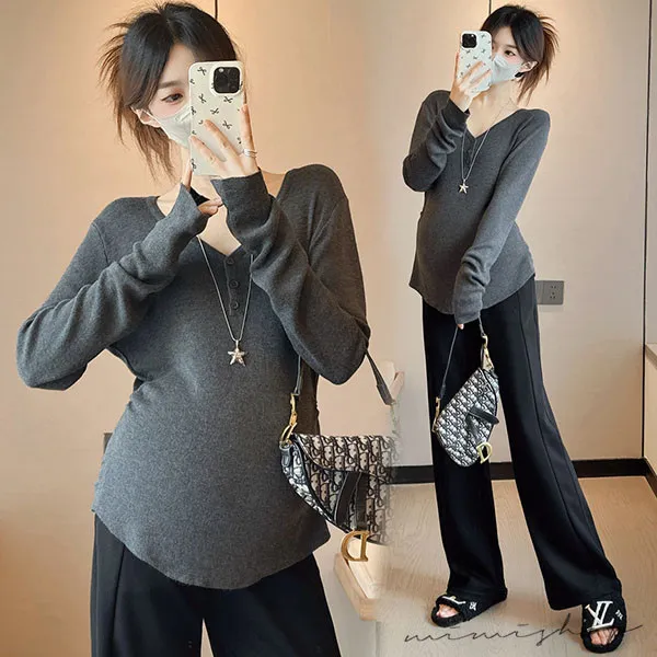 【P511305】不限孕期 顯瘦v領針織衣 彈力優質 內搭衣