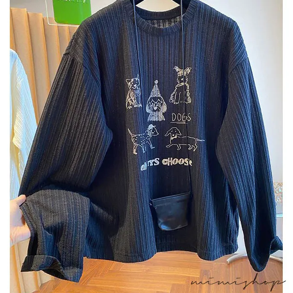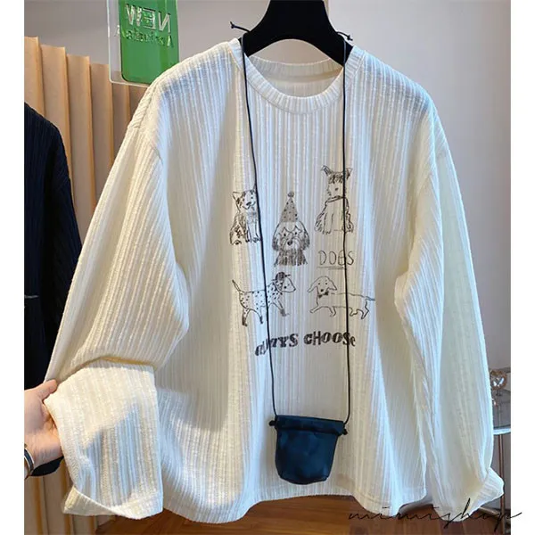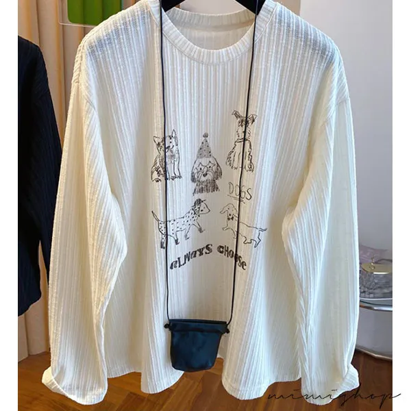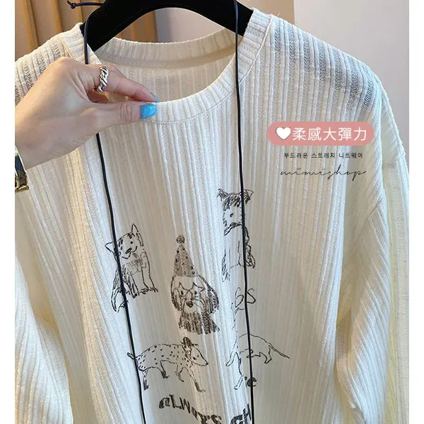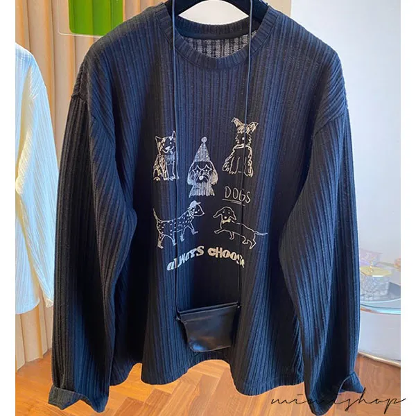 【P511310】輕鬆隨意搭 寬鬆彈力狗狗印花上衣 舒適顯瘦 不限孕期